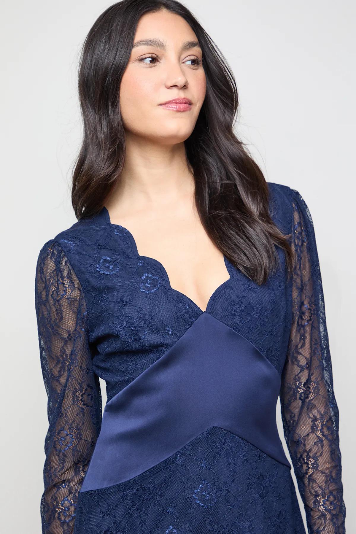 Dresses | Satin Lace Mix V Neck Maxi Dress | Oasis