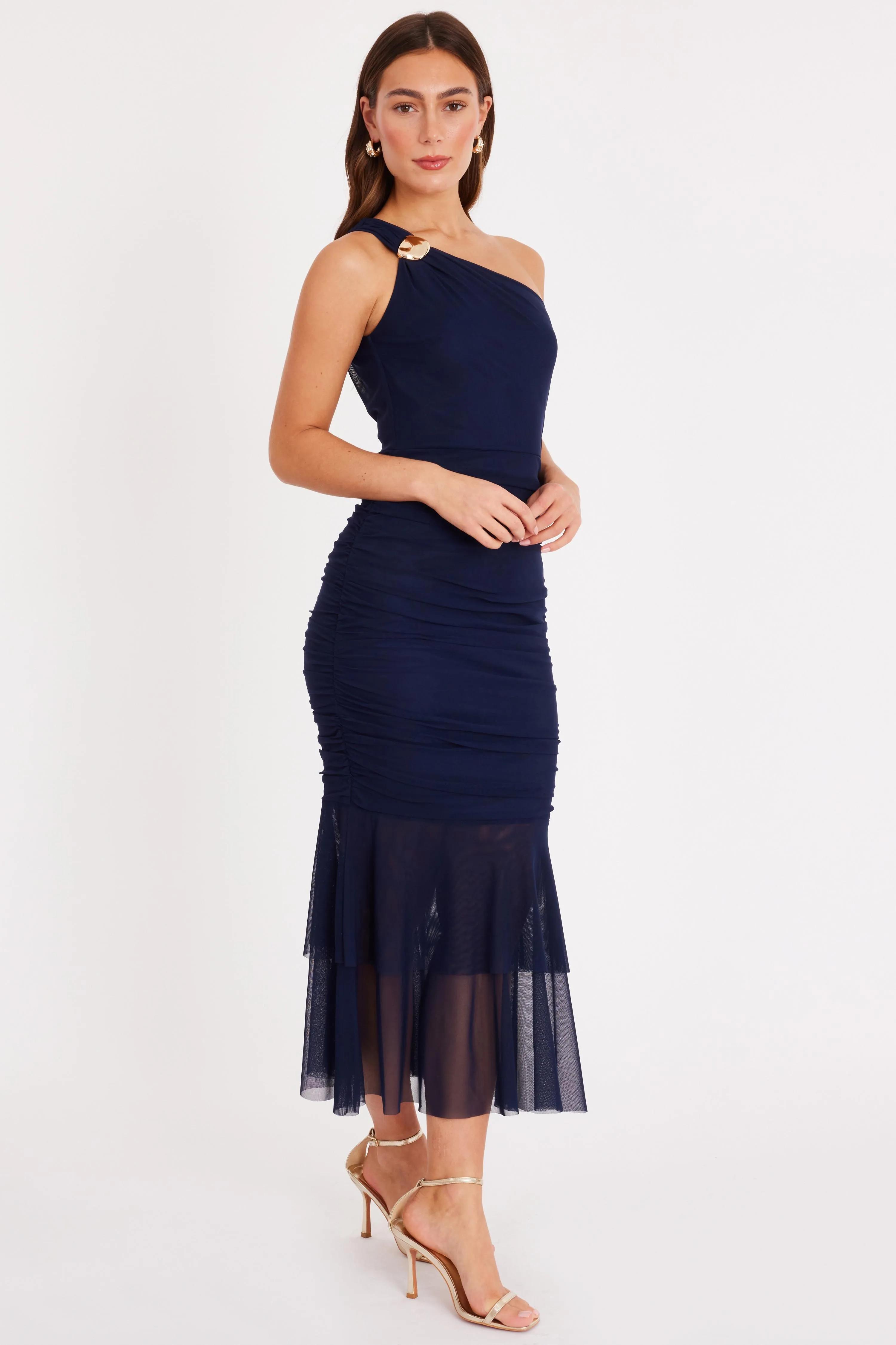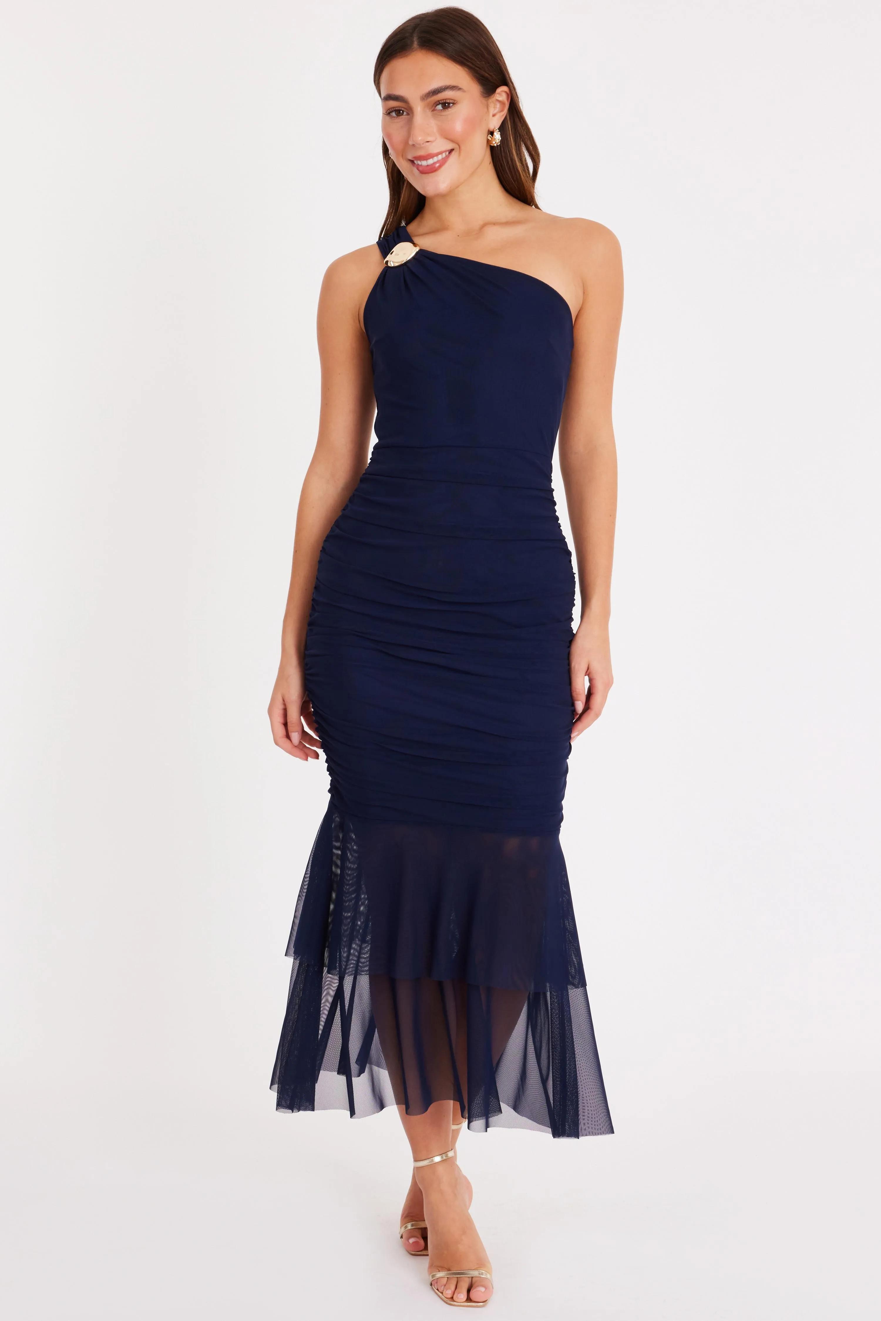 Dresses | Navy Mesh One Shoulder Midaxi Dress | Quiz