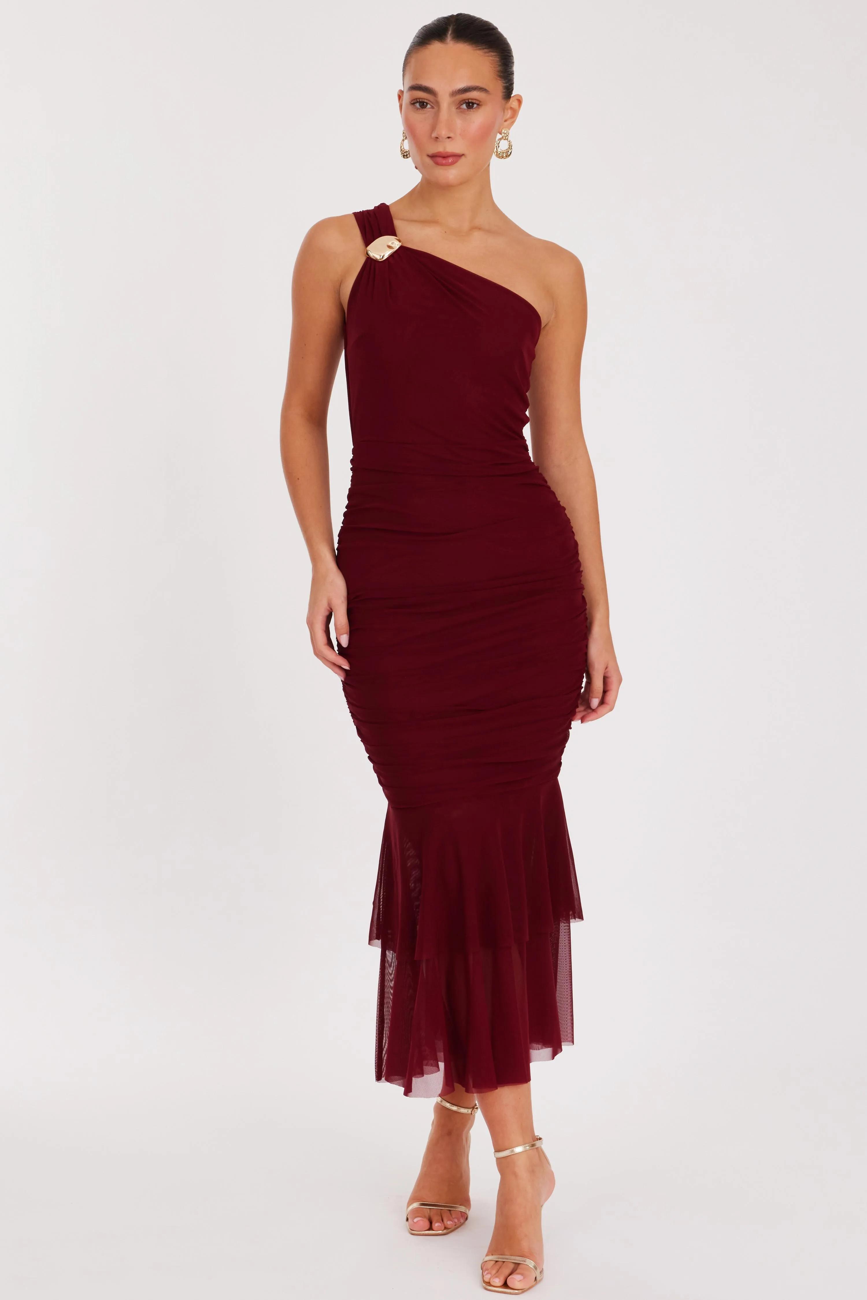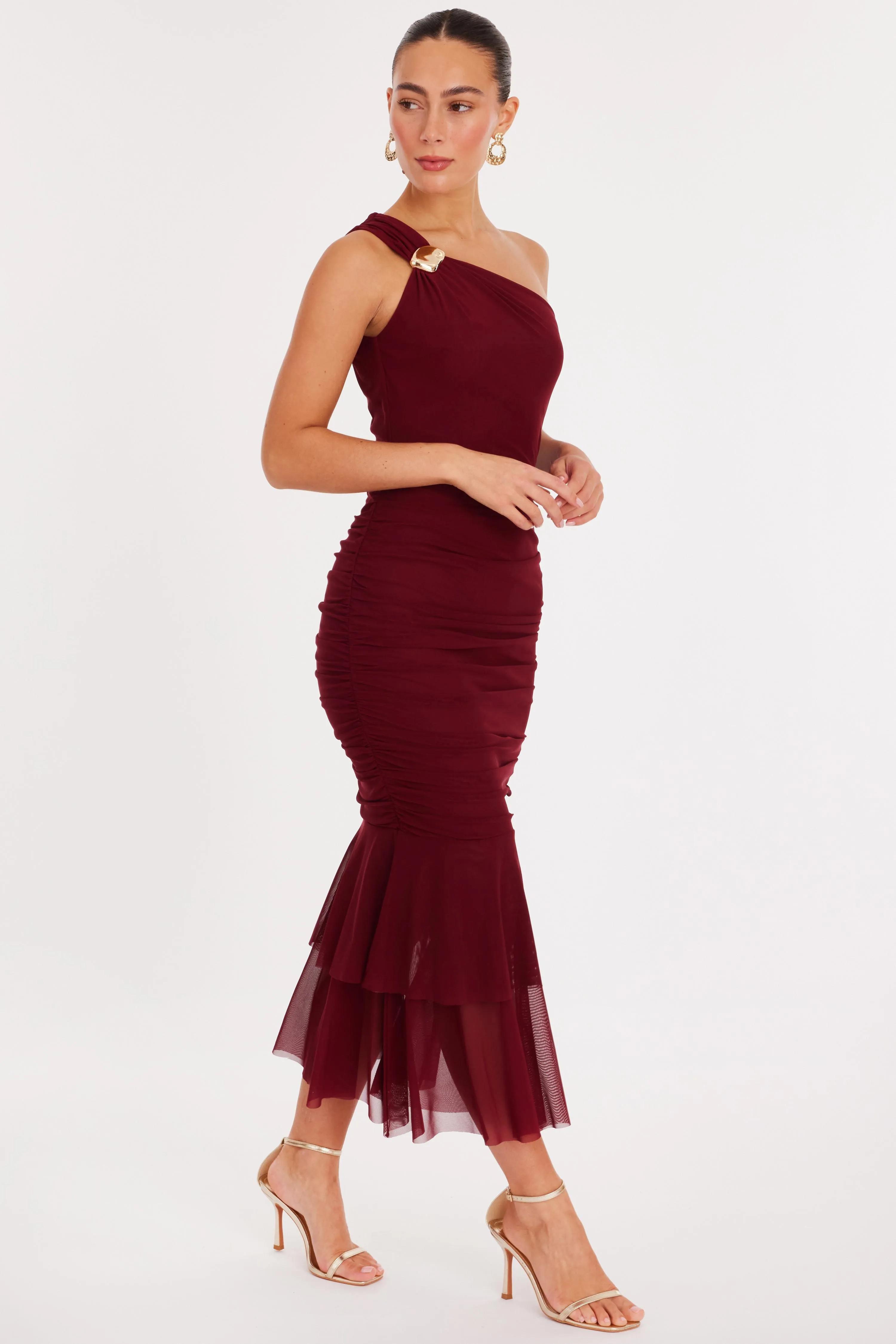 Dresses | Wine Mesh One Shoulder Midaxi Dress | Quiz