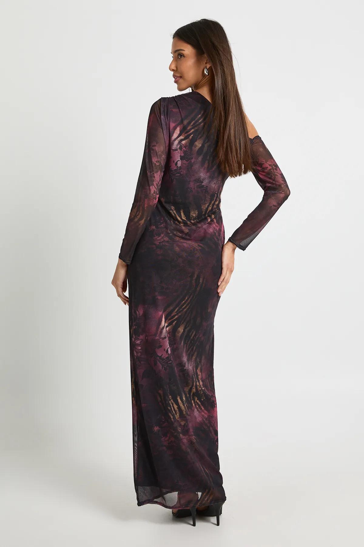Dresses | Printed Floral Mesh Asymmetric Tie Waist Maxi Dress | boohoo