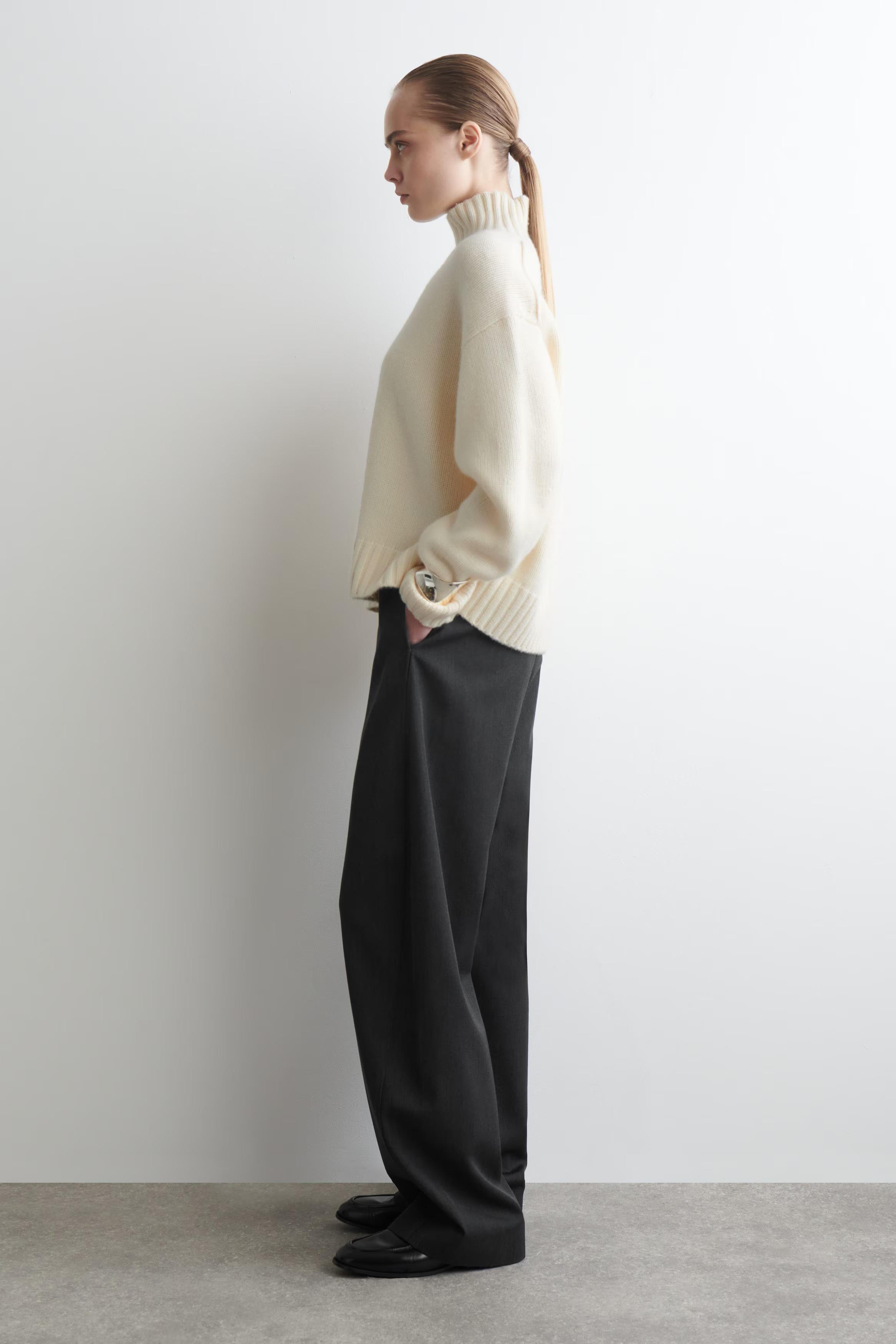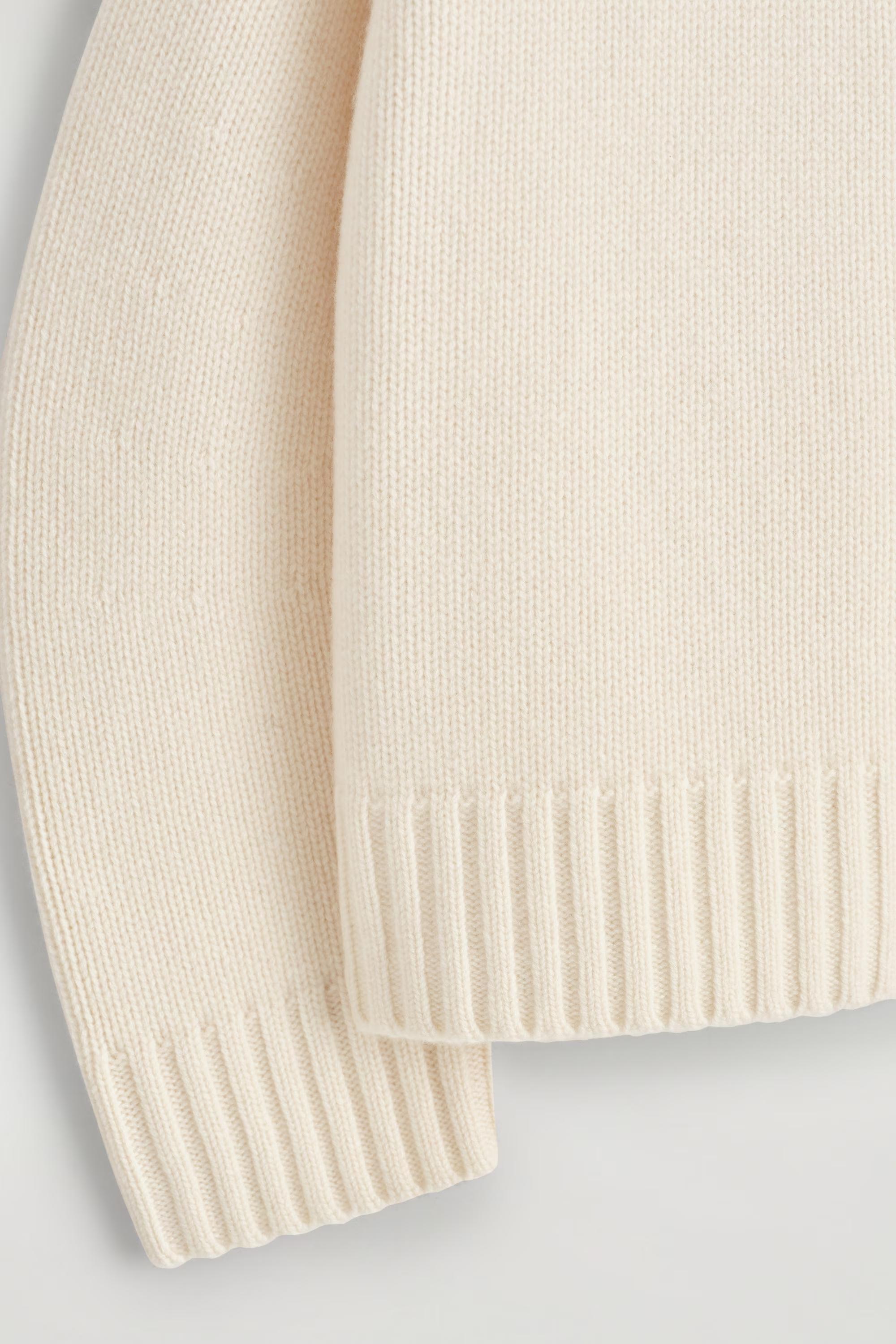 The COS cashmere collection is testament to the house codes of premium materials and impeccable craftsmanship. This chunky jumper is knitted from luxuriously soft GCS cashmere yarn and designed with a funnel neckline and ribbed trims.\u0026nbsp;Regular fitThe Good Cashmere Standard\u0026reg; is owned by Aid by Trade Foundation (AbTF) and sets out requirements on animal welfare, land management and herders' working conditions\u0026nbsp;Shell: 100% GCS cashmere. Excluding trims / Machine wash\u0026nbsp;Back length of size S is 57cm / Model wears a size S