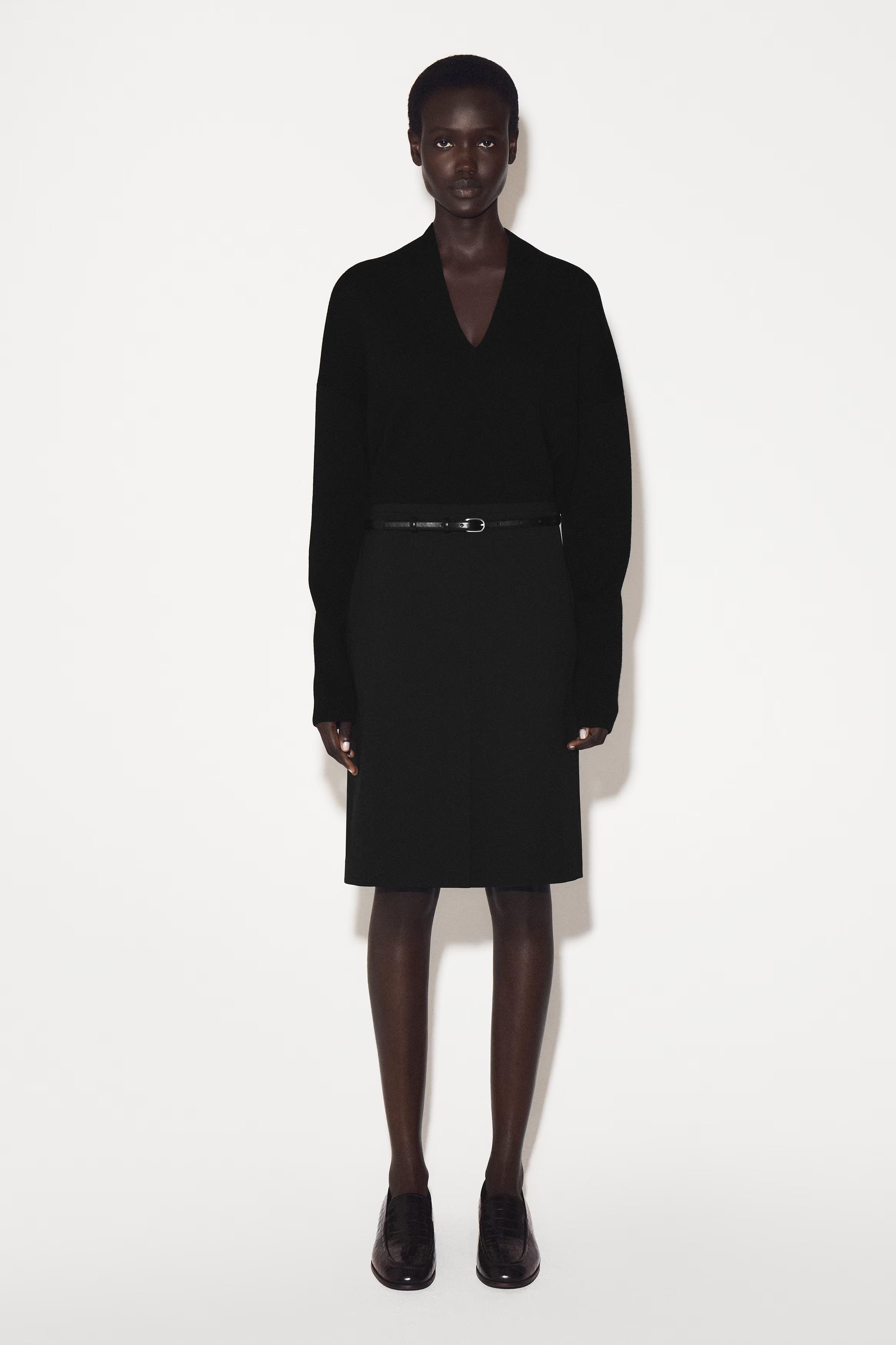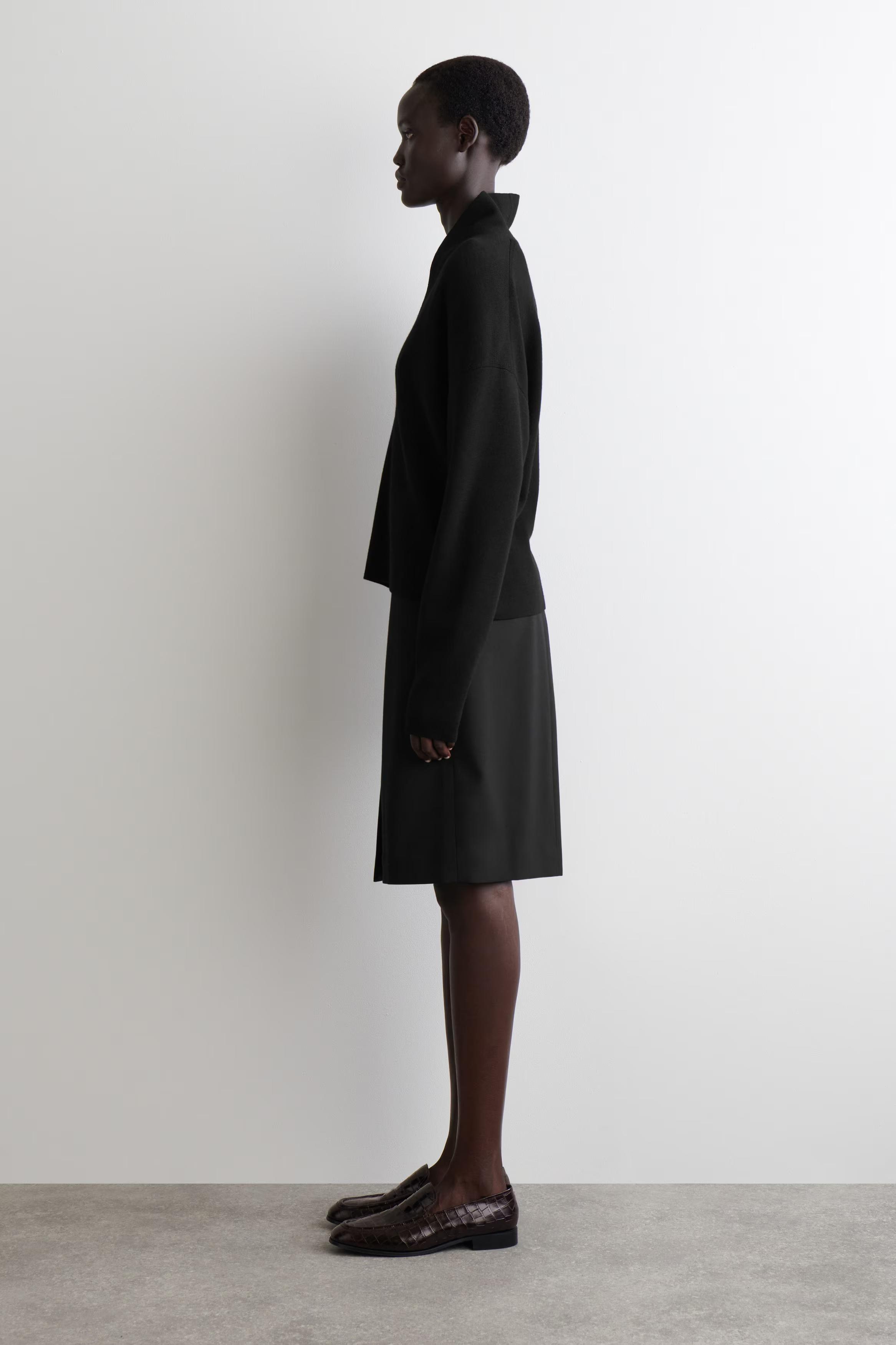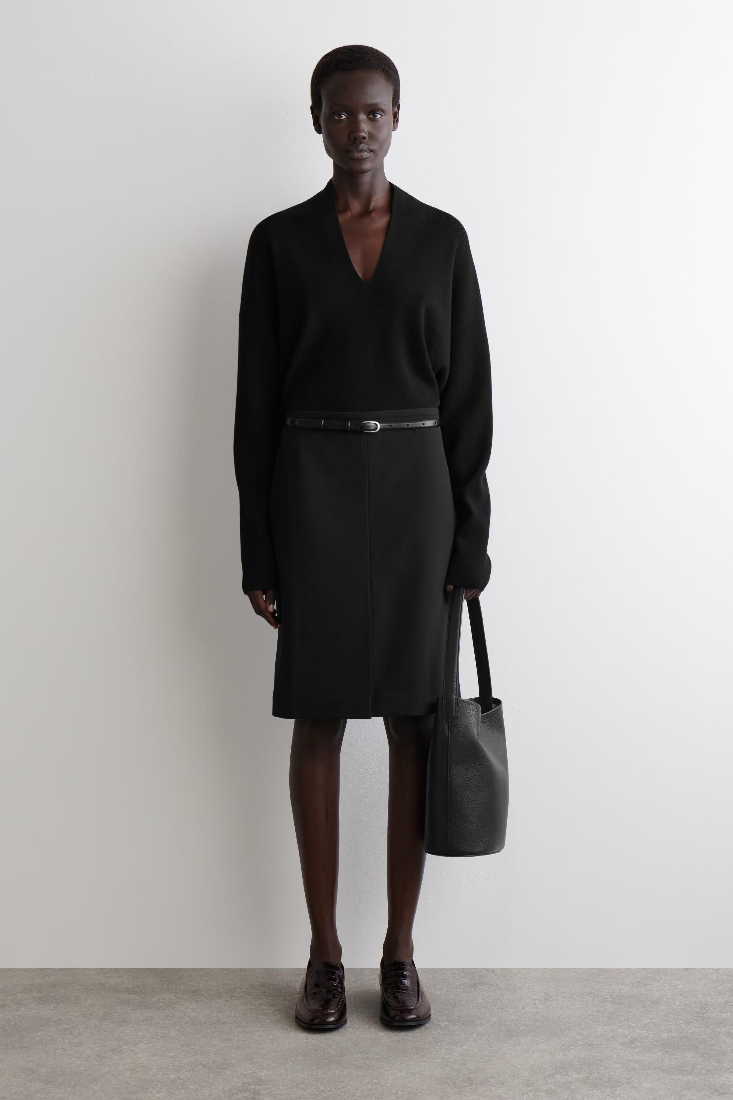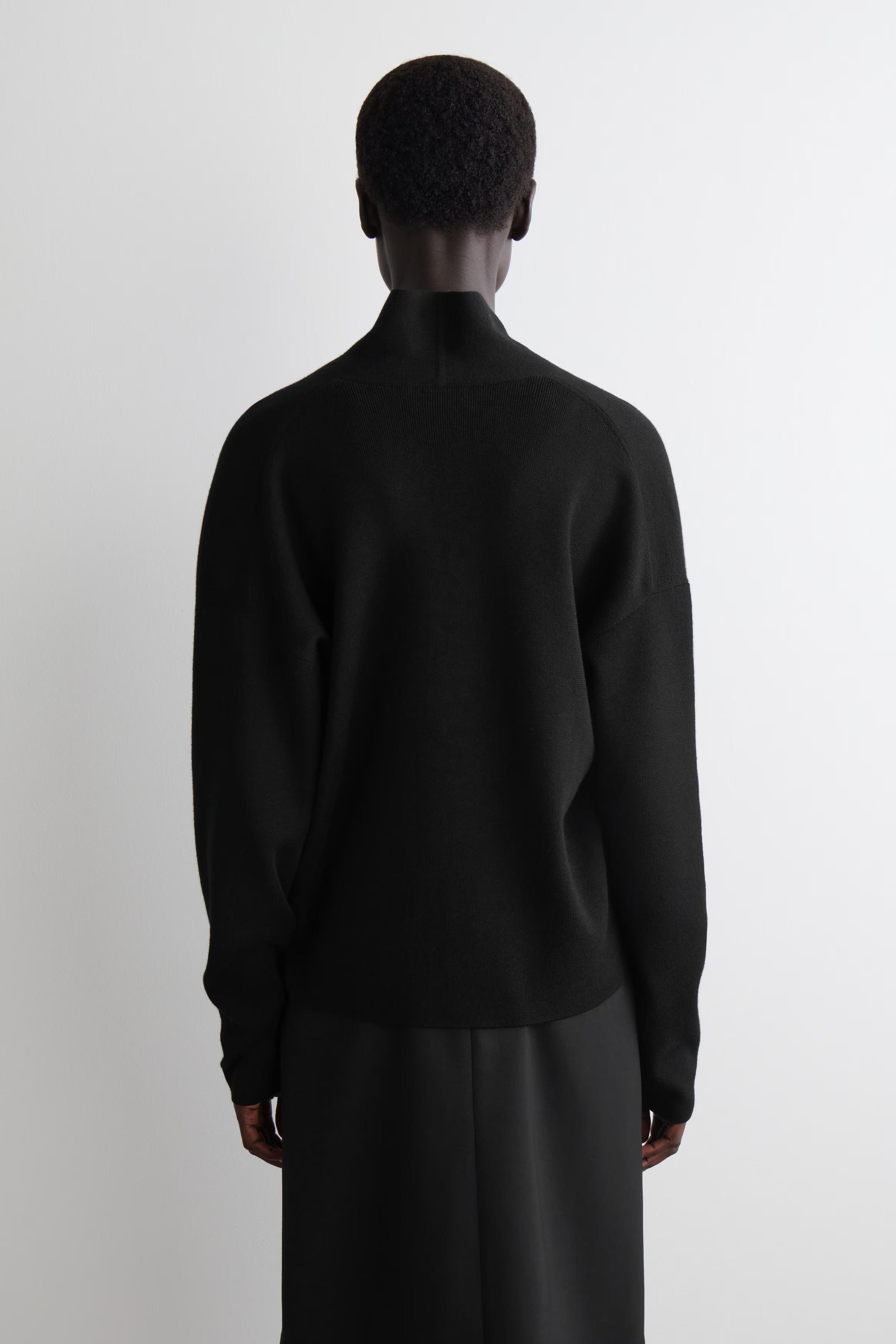 Understated pieces like this jumper charge the transitional wardrobe with a renewed appeal. It's crafted from ultra-soft merino wool in a subdued beige hue and features a sculptural V-neckline that folds gently in at the collar.\u0026nbsp;Regular fitThis product contains Responsible Wool Standard TE-00047206 (RWS) wool fibre from farms certified to animal welfare and land-management requirements\u0026nbsp;Shell: 100% Merino wool. Excluding trims / Machine wash\u0026nbsp;Back length of size S is 59cm / Model wears a size S