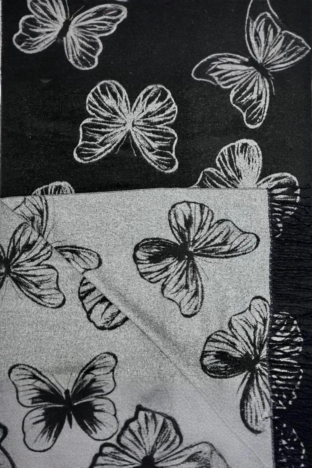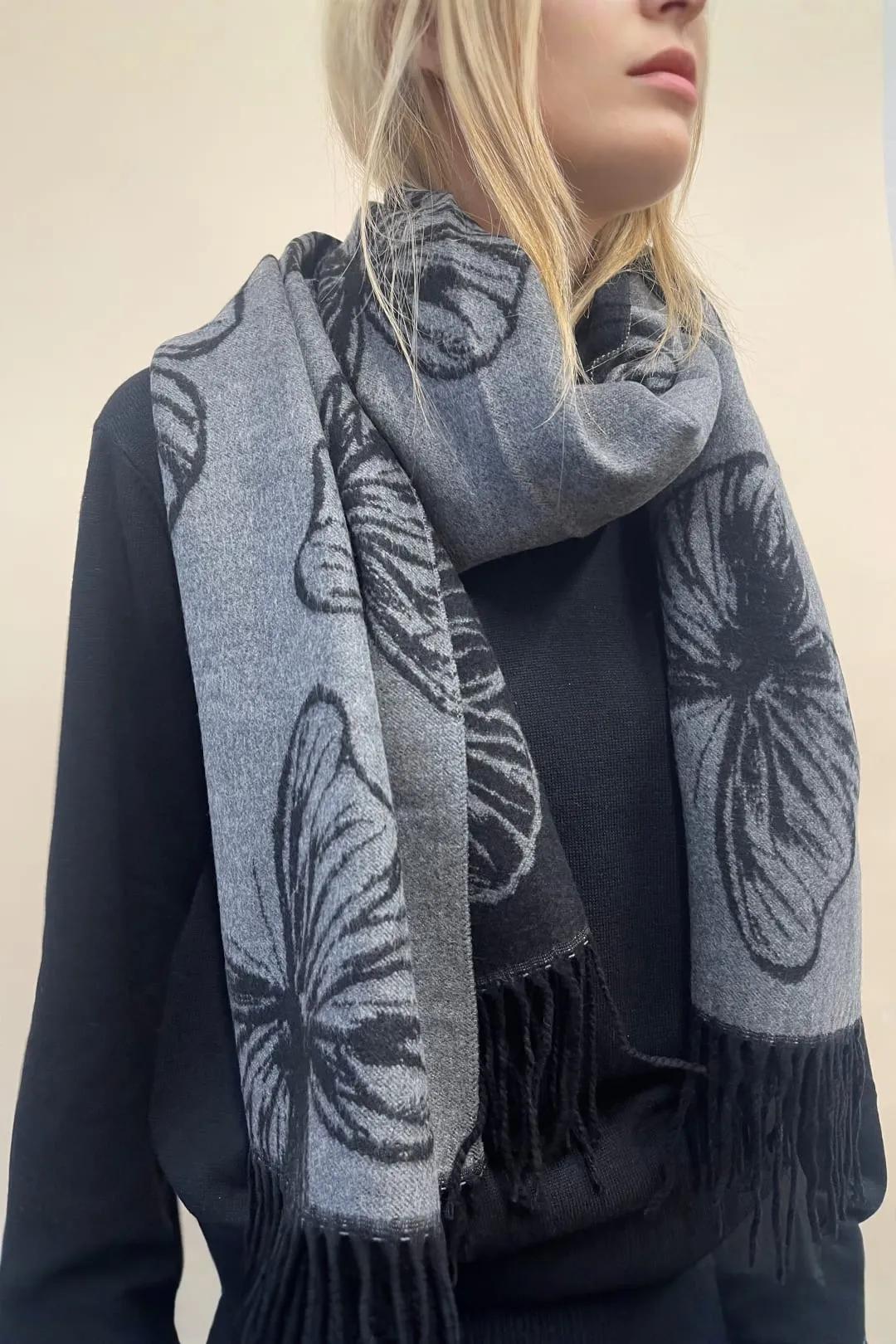 Gloves & Scarves | Butterfly Printed Cashmere Scarf with Tassels | SVNX