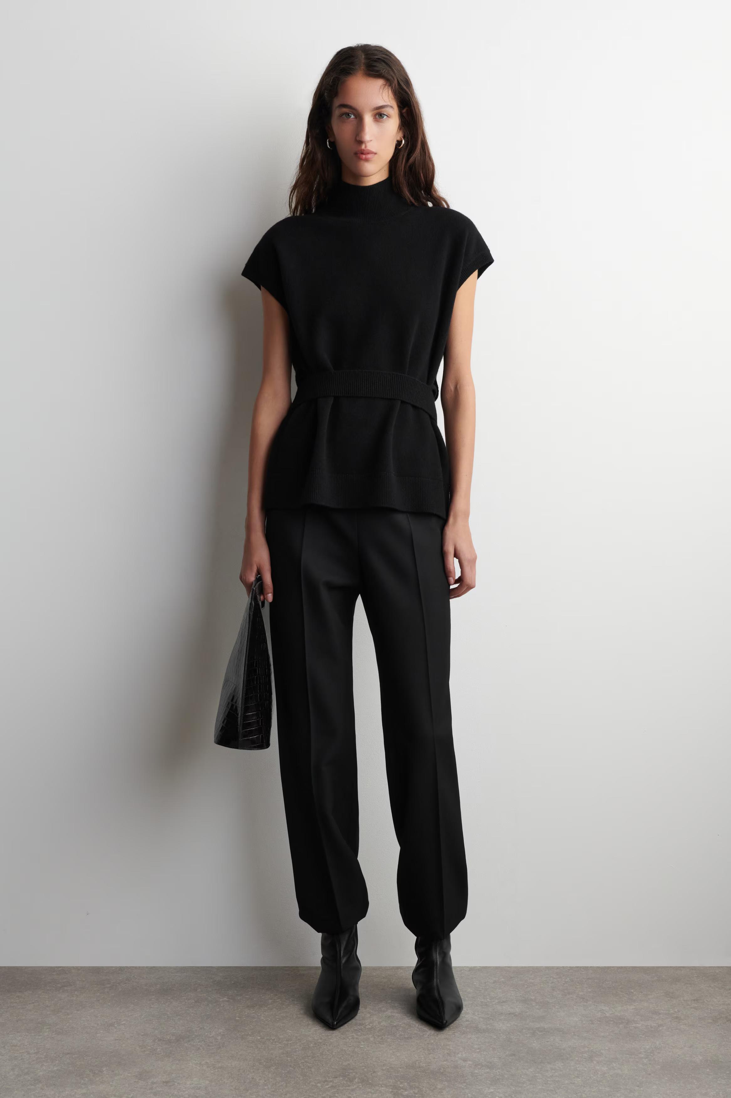 Refined in its appeal, this vest is knitted from ultra-soft merino wool and designed in a softly rounded shape. It features a ribbed funnel neck and deconstructed hem that subtly tempers the waistline. Style it with classic tailoring.\u0026nbsp;Regular fitThis product contains Responsible Wool Standard TE-00047206 (RWS) wool fibre from farms certified to animal welfare and land-management requirements\u0026nbsp;Shell: 100% Merino wool. Excluding trims / Machine wash\u0026nbsp;Back length of size S is 56cm / Model wears a size S