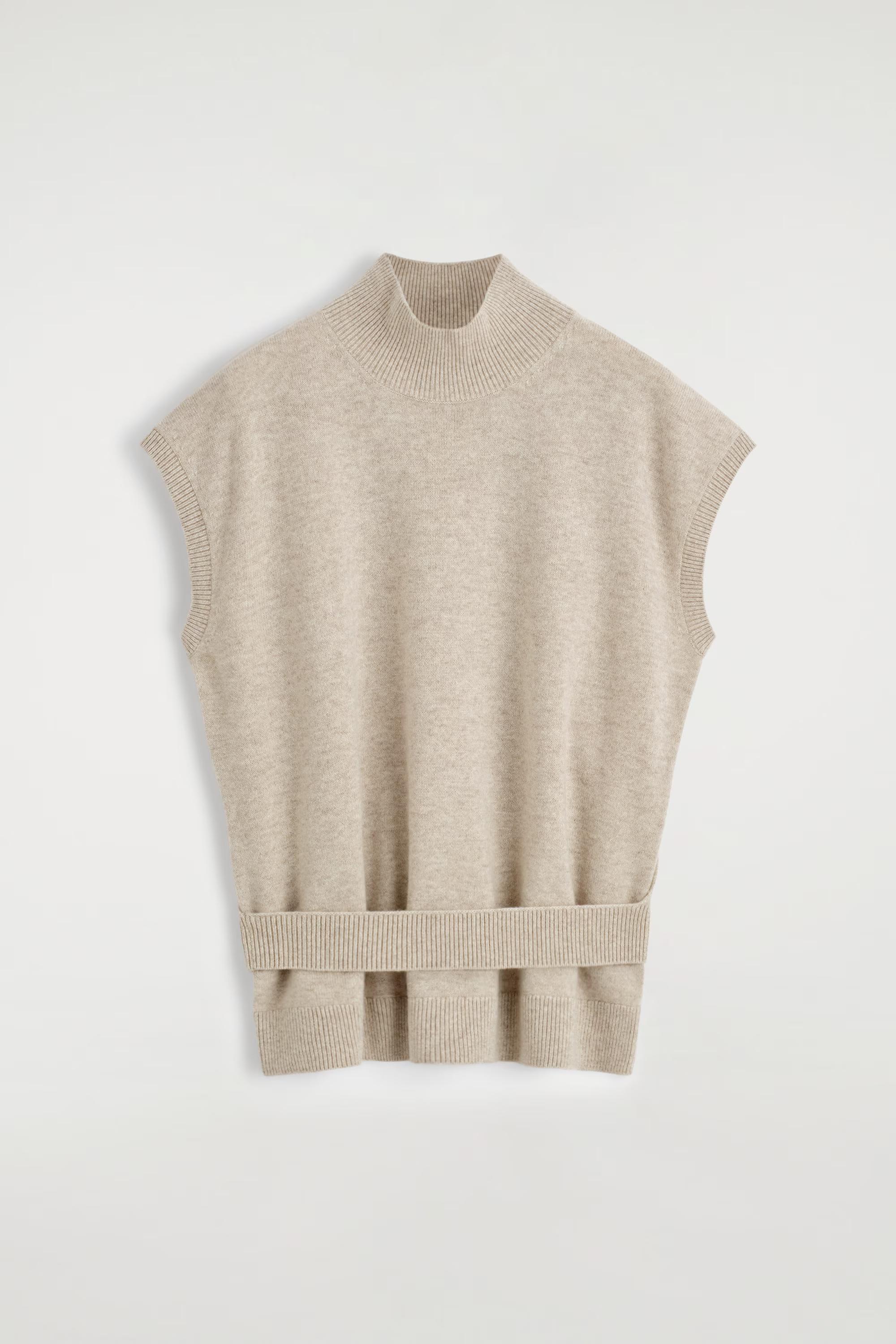 BELT-DETAIL FUNNEL-NECK WOOL VEST