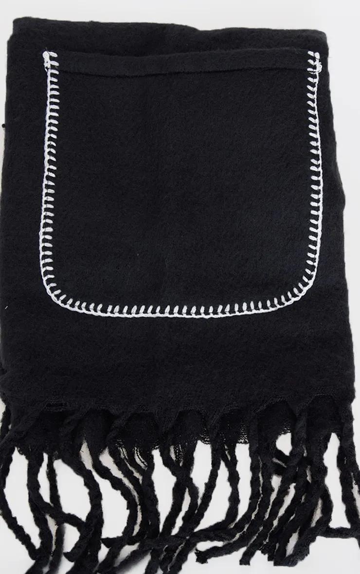 Gloves & Scarves | Black Pocket Stitch Detail Tassel Scarf | PrettyLittleThing