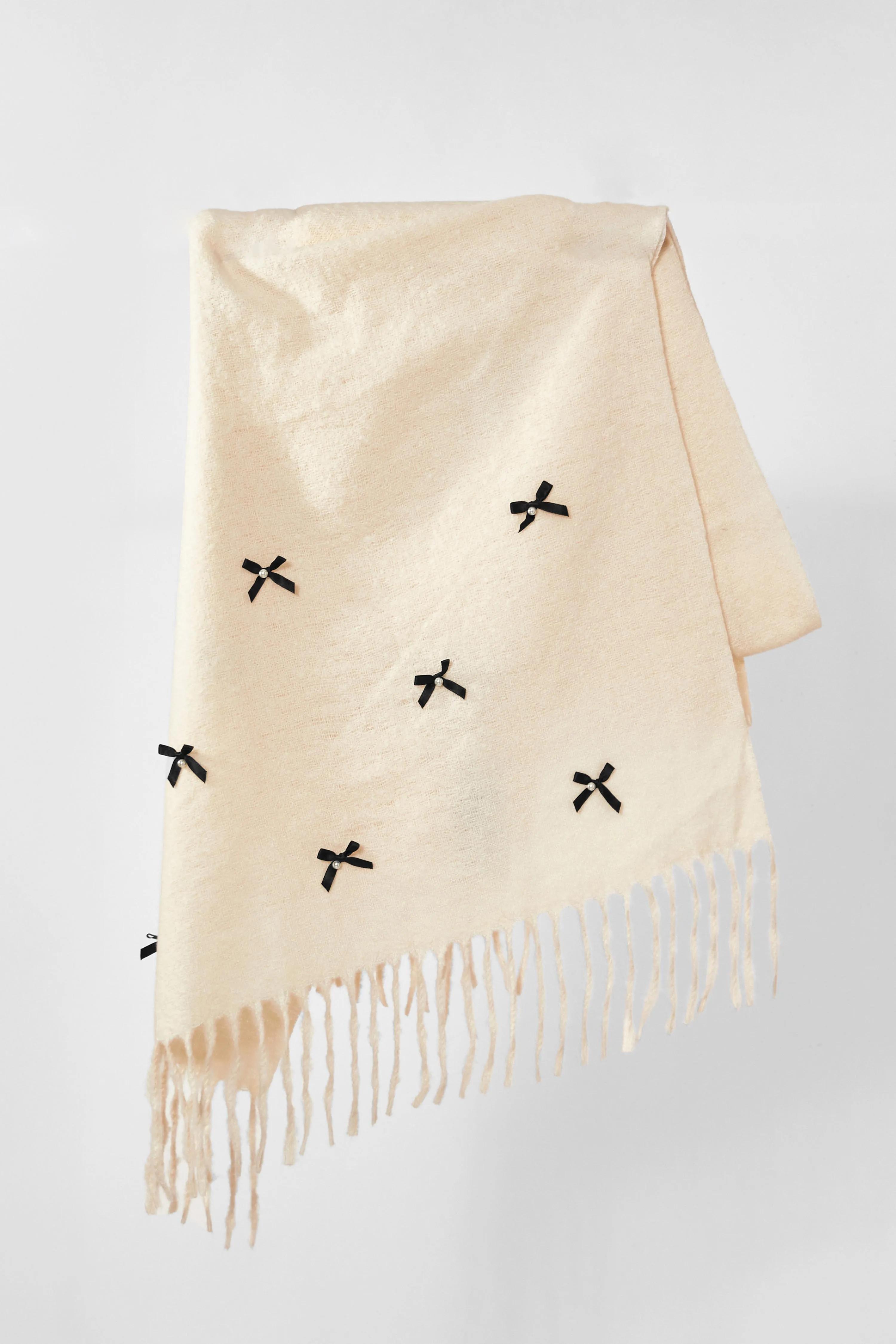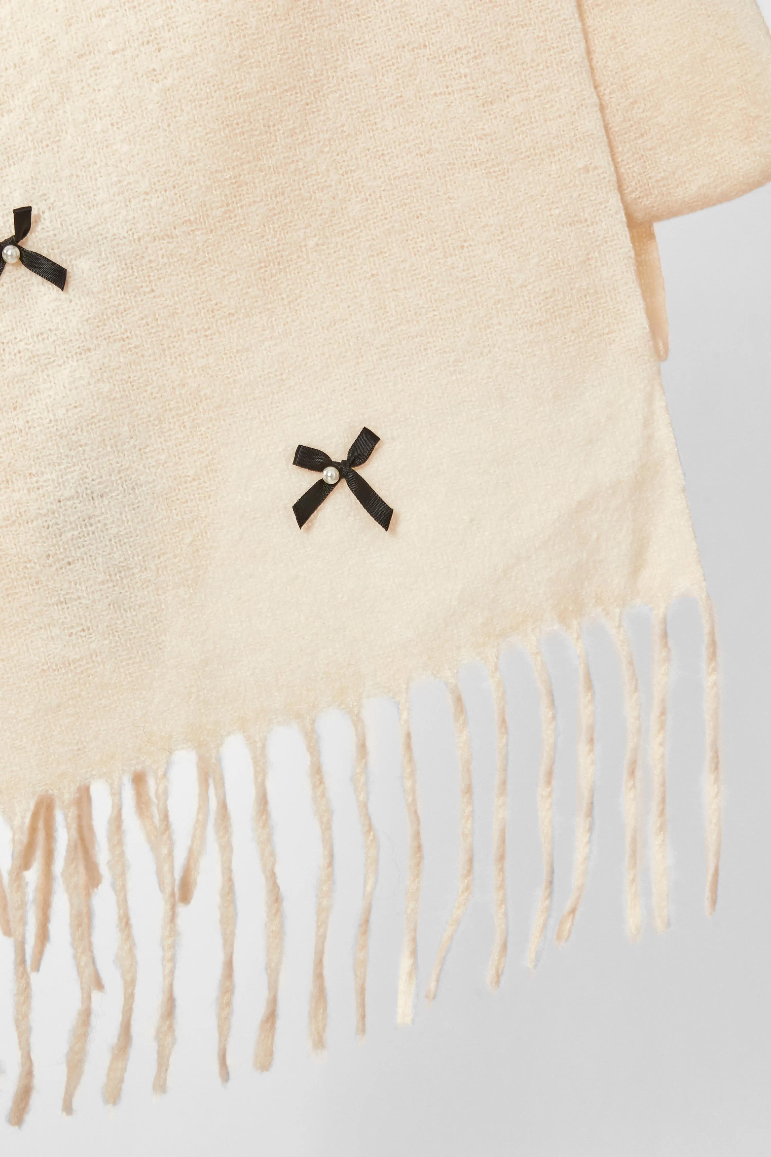 Gloves & Scarves | Off White Bow Detail Scarf | Quiz