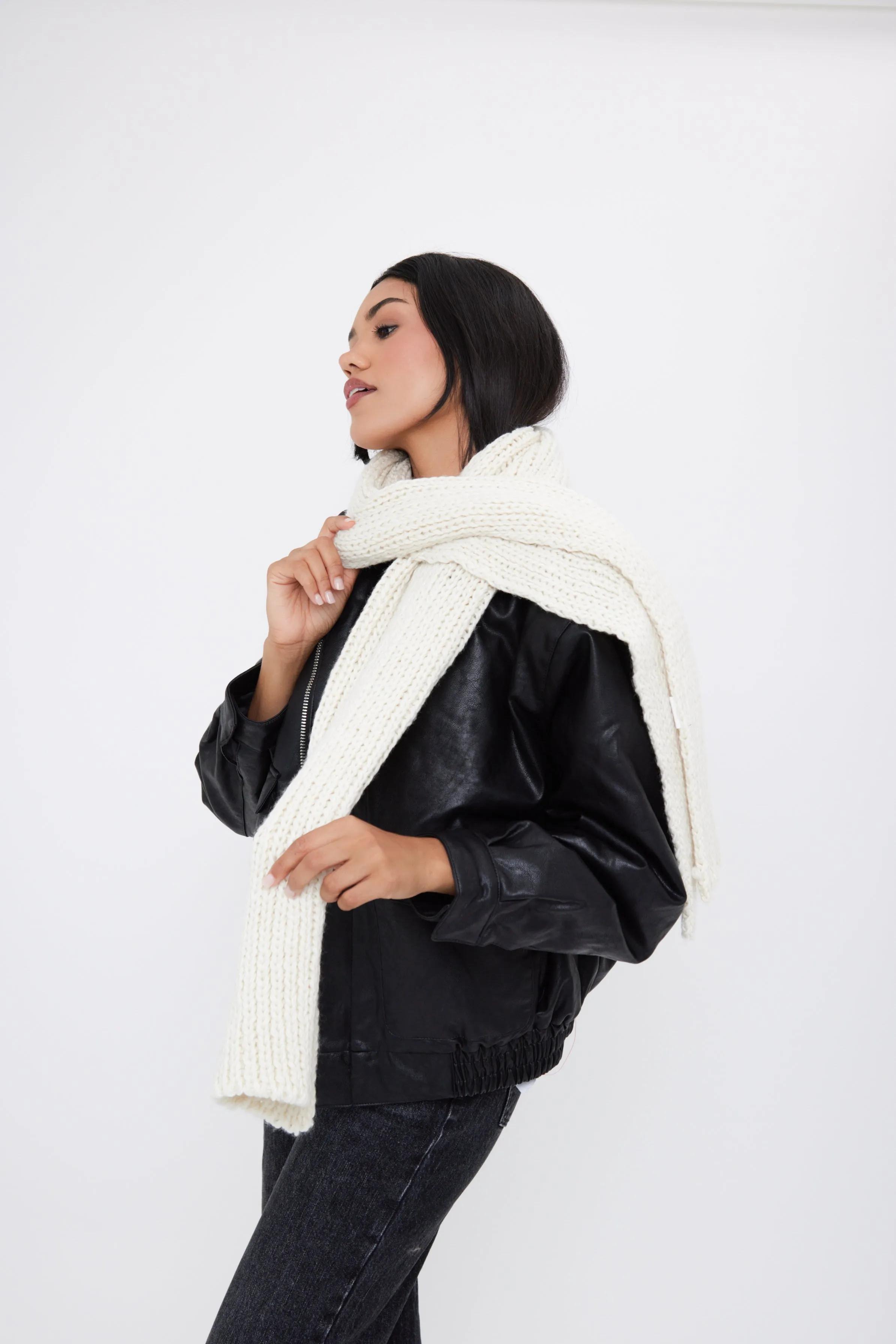Gloves & Scarves | Knitted Chunky Scarf in Cream | My Accessories London