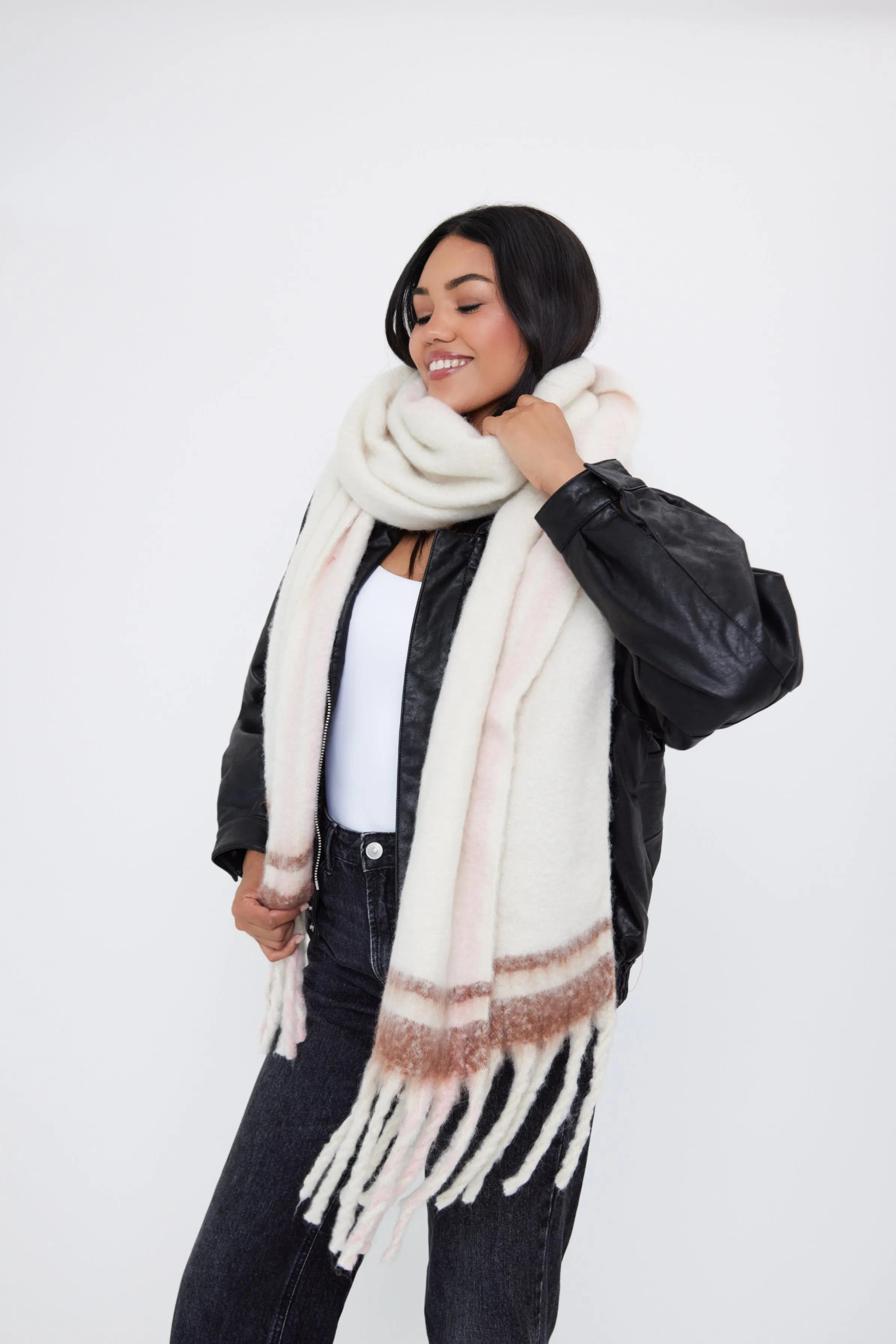 Gloves & Scarves | Oversized Chunky Blanket Scarf with Stripe Detail | My Accessories London