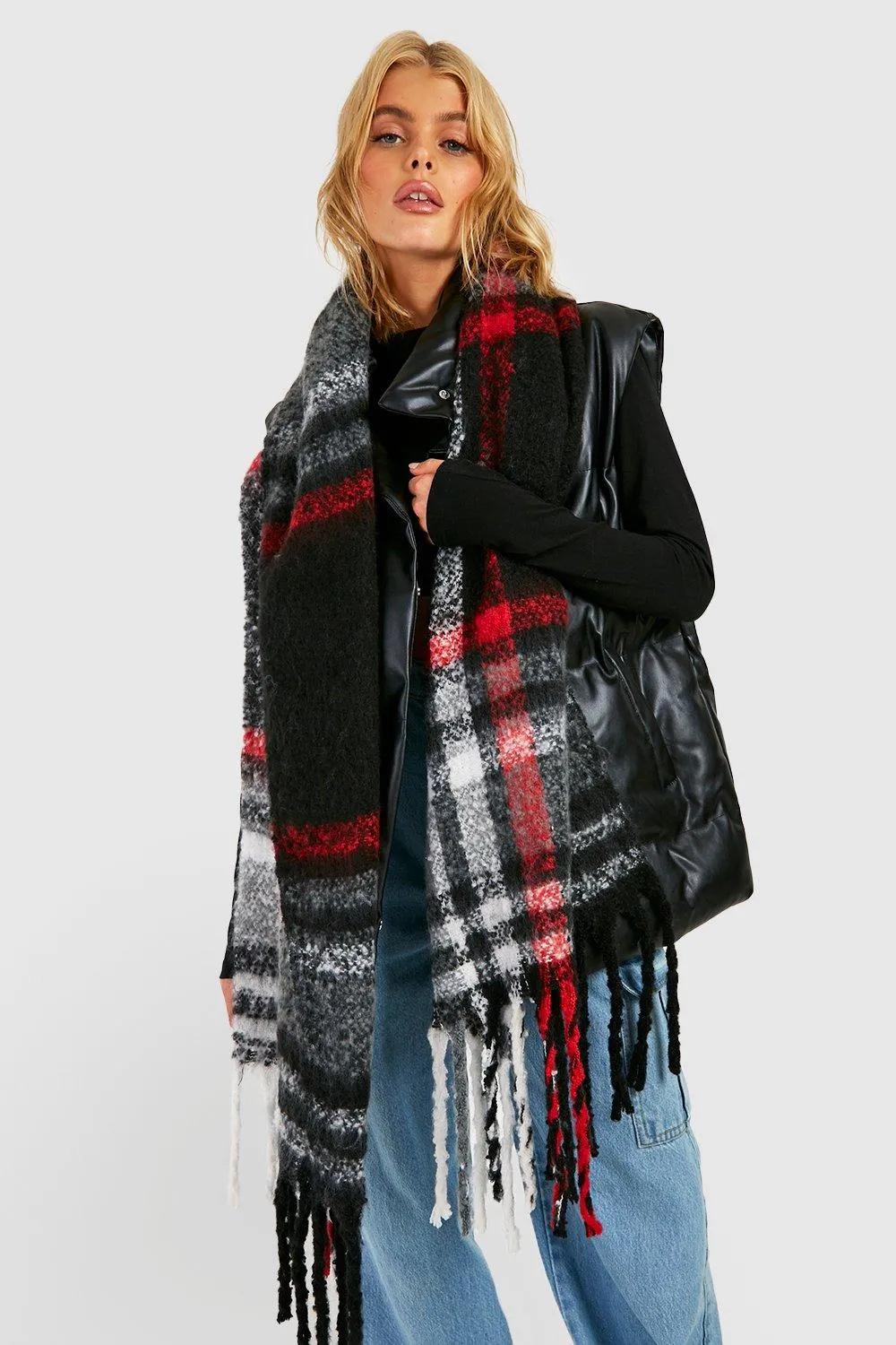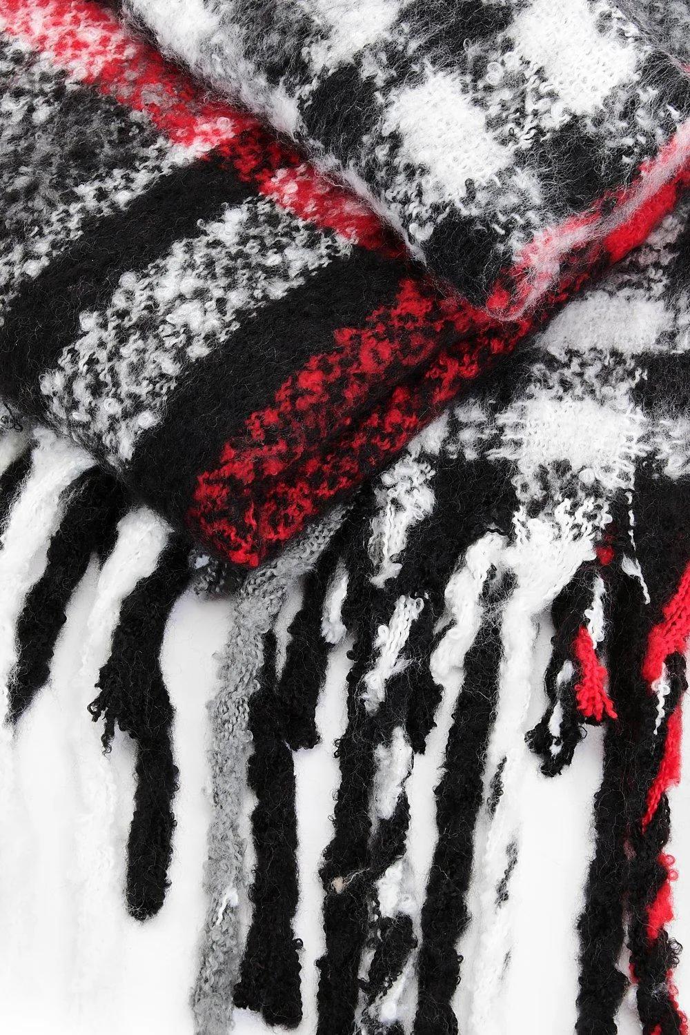 Discover Chunky Black & Red Checked Tassel Scarf available to buy online at boohoo.com. Available with quick delivery and easy return options. Shop now!
