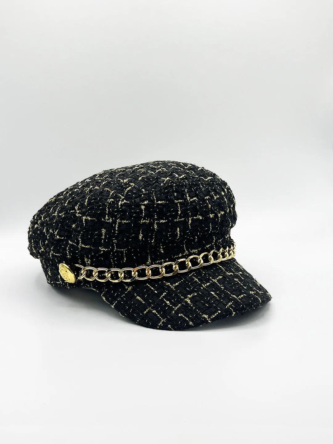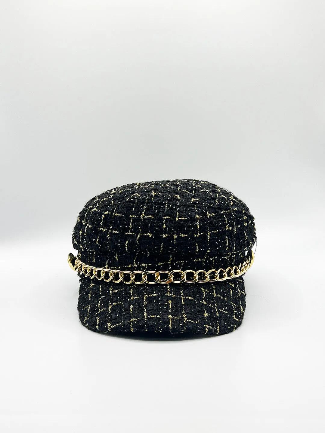 Hats | Tweed Baker Boy Hat In Black | SVNX