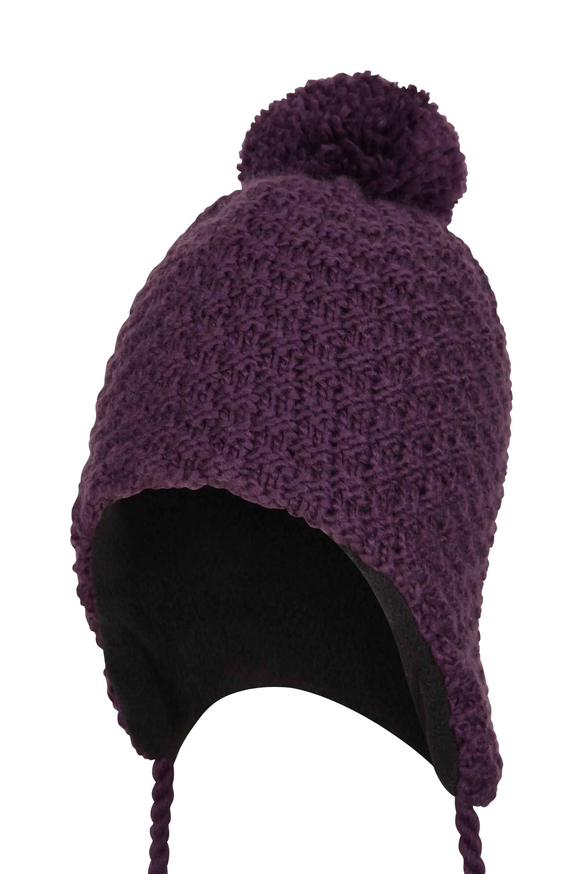 Hats | 'Macaroni' Warm Wind Protection Ear Flaps Knit Winter Bobble Hat | Mountain Warehouse