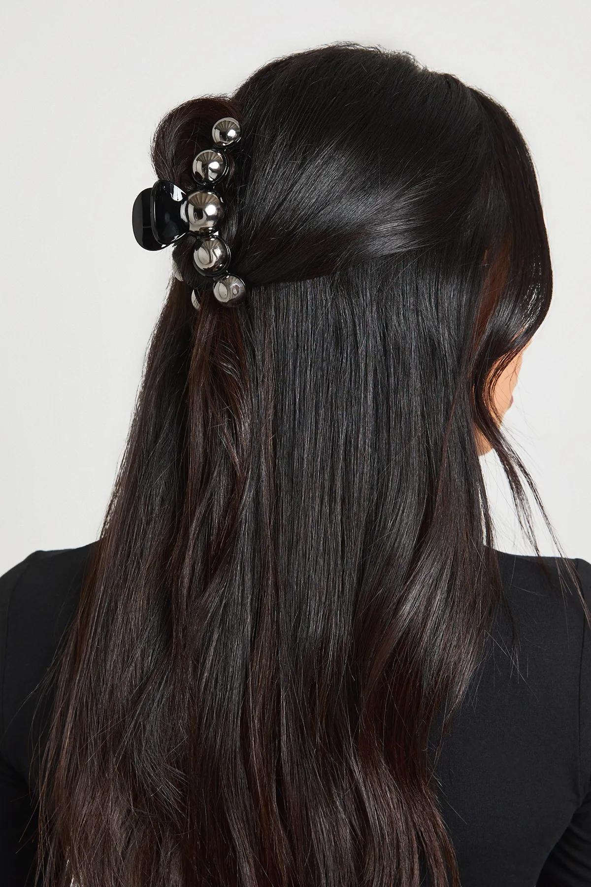 Hair Accessories | Large Black Pearl Claw Clip | boohoo