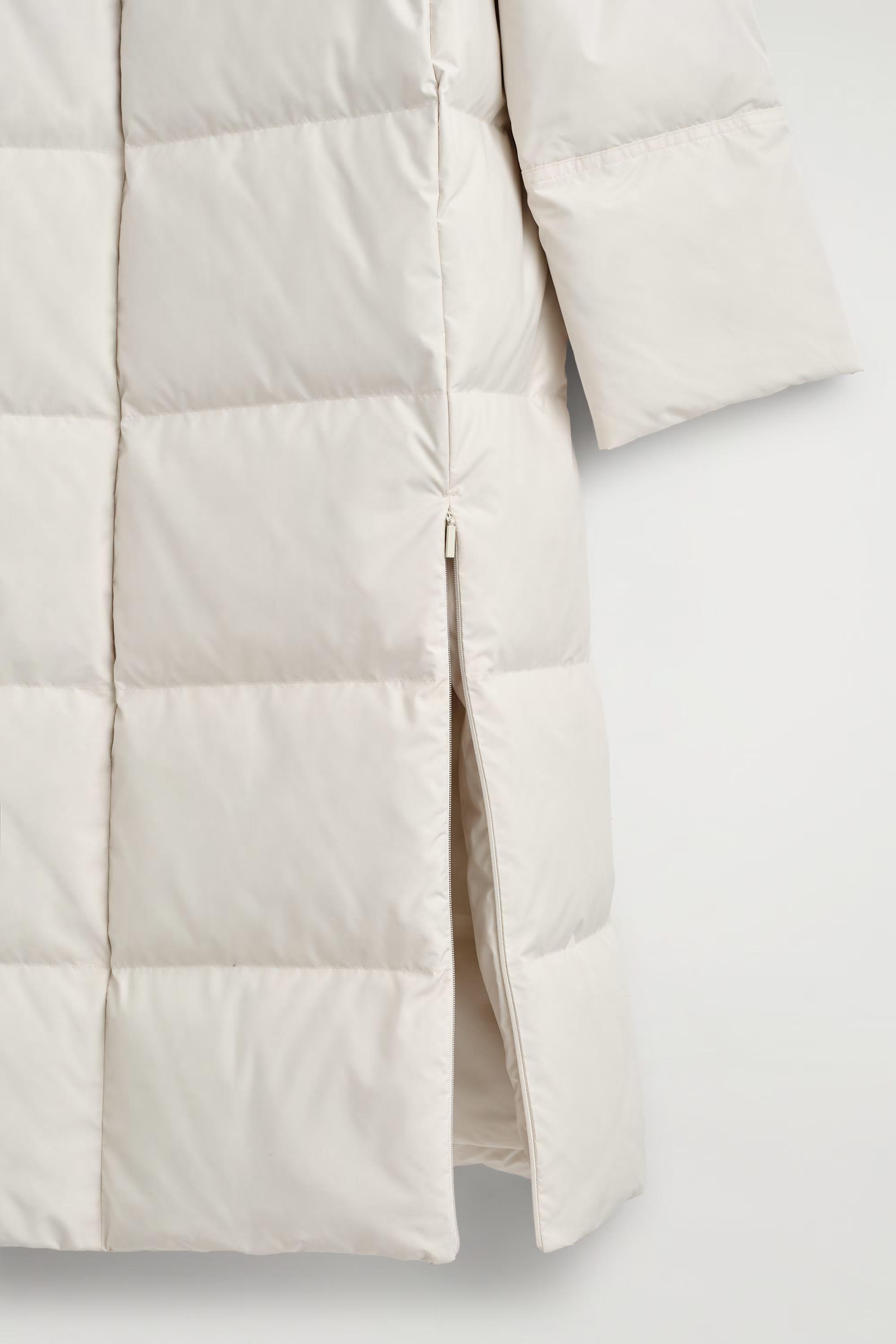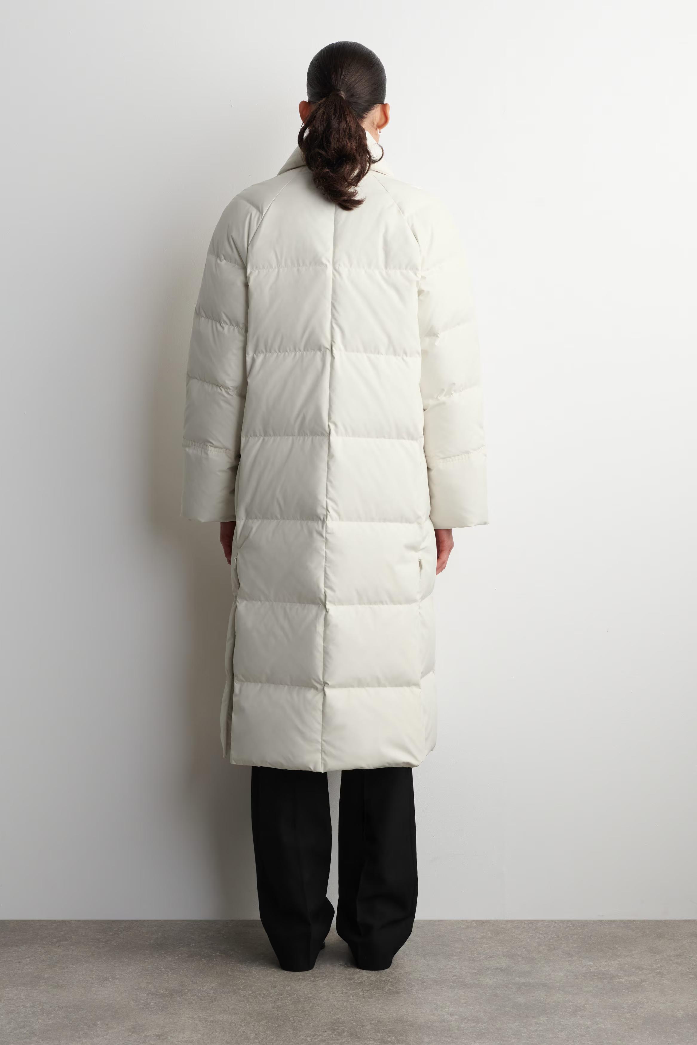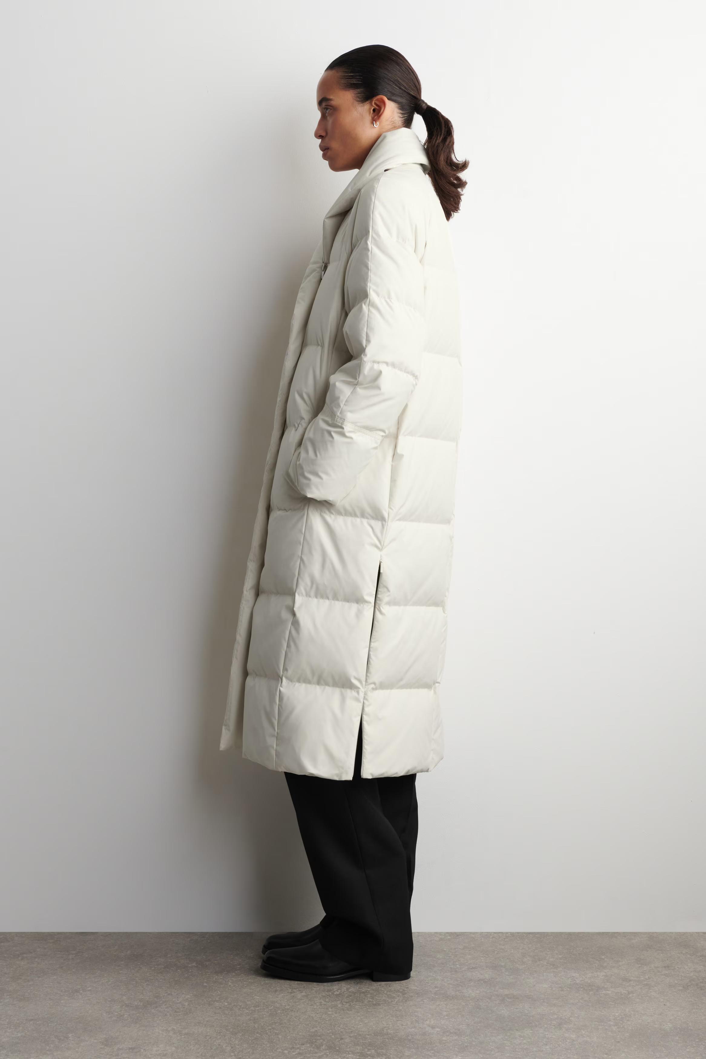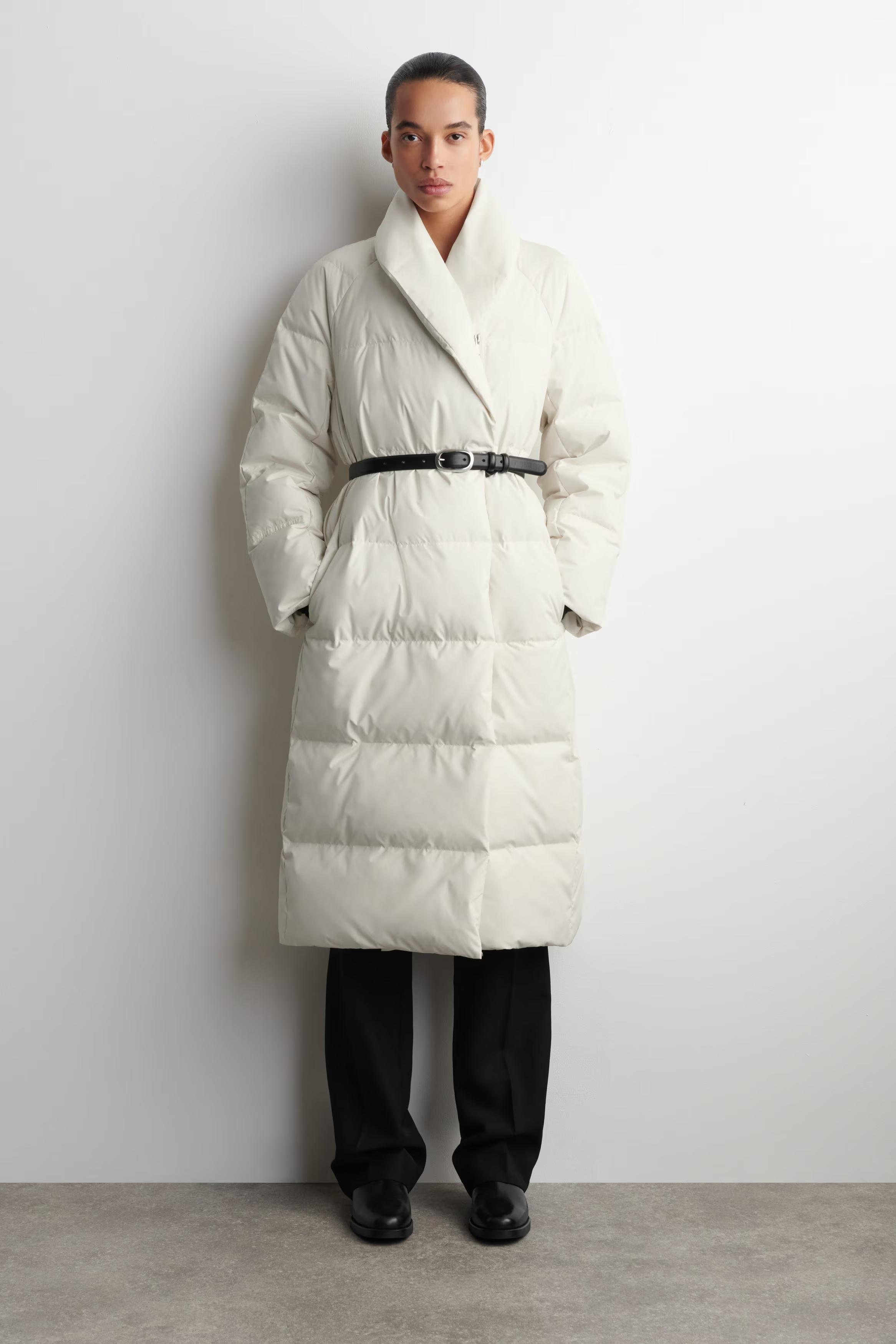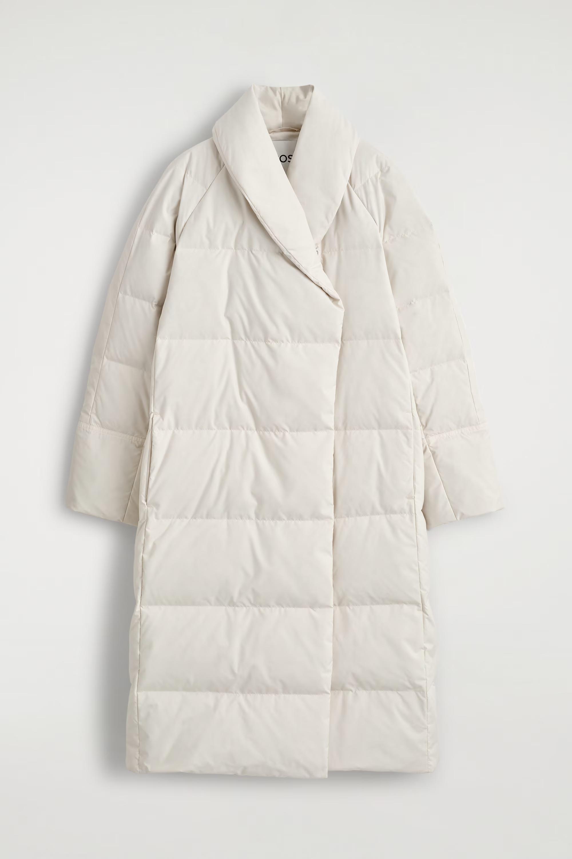 For Autumn Winter 2025, the womenswear designers propose a refined take on the classic puffer. Designed with a modern shawl collar, this longline coat is filled with insulating down that's quilted for even heat distribution and finished with subtle pockets and a concealed zip. Layer it over a chunky knit when the weather cools.\u0026nbsp;Regular fitZip closureRecycled polyester is polyester made from PET bottles or end-of-life textile waste. The PET bottles or textile waste is mechanically recycled and processed into new yarn\u0026nbsp;Shell and lining: 100% Recycled polyester. Padding: 80% Recycled down, 20% Recycled feather. Excluding trims / Machine wash\u0026nbsp;Back length of size S is 115.2cm / Model wears a size S