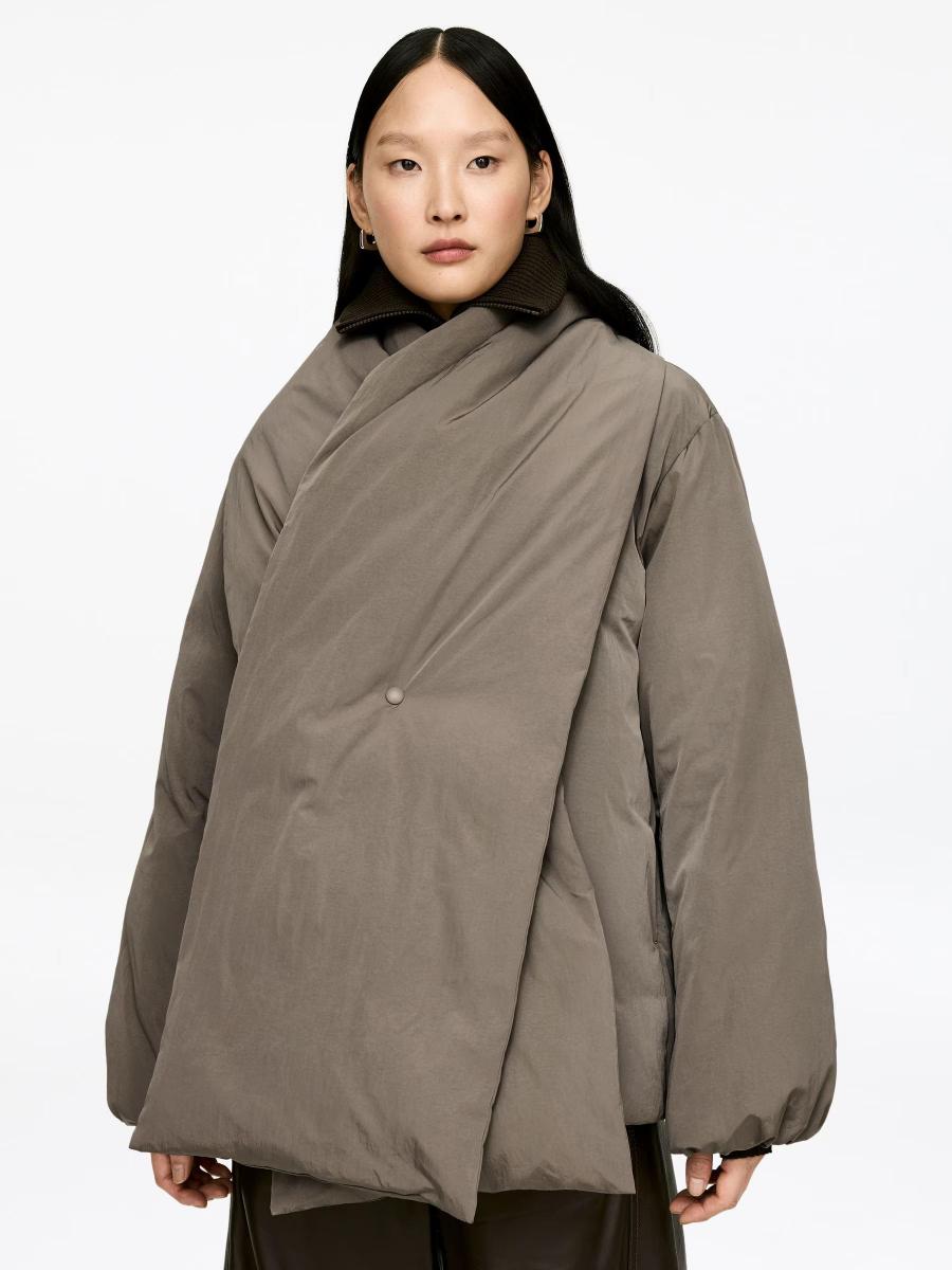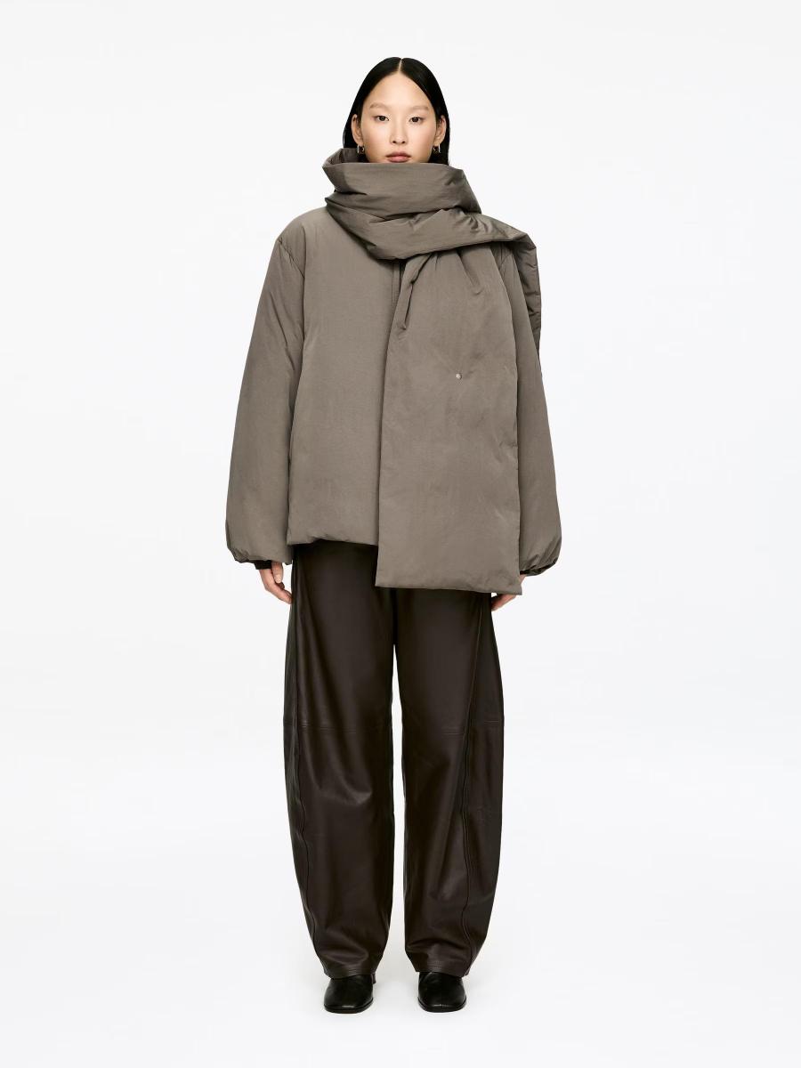 Down jacket with a detachable down scarf, zip fastening and concealed side-seam pockets. Made with a polyester outer and a filling of feathers and down. The Upcycled Down products are filled with recycled down and feathers sourced from Re:Down®. These materials, collected from used textiles, are washed and sterilised at high temperatures without the use of chemicals.ARKET/