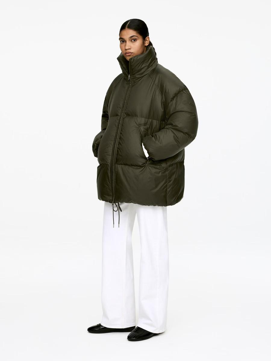 A cornerstone of our outerwear collection, this refined everyday puffer jacket is insulated with a down-feather blend for warmth. It’s finished with a stand collar, clean front zip, and zippered welt pockets. The drawstring hem with metal stopper allows for adjustment. The Upcycled Down products are filled with recycled down and feathers sourced from Re:Down®. These materials, collected from used textiles, are washed and sterilised at high temperatures without the use of chemicals.ARKET/Women's clothes/Women's coats and jackets/Women's jackets