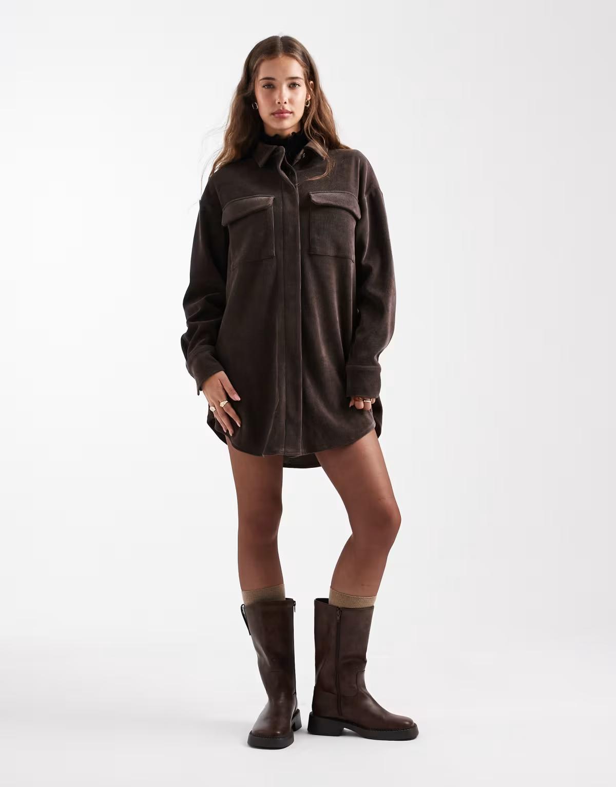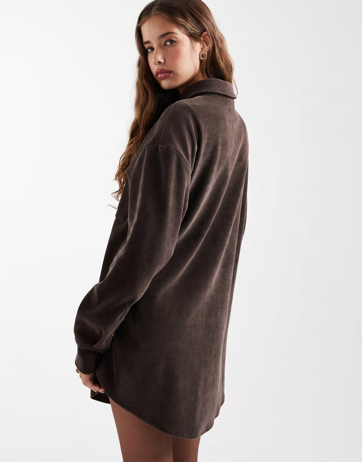 ASOS DESIGN cord utility shirt mini dress in chocolate