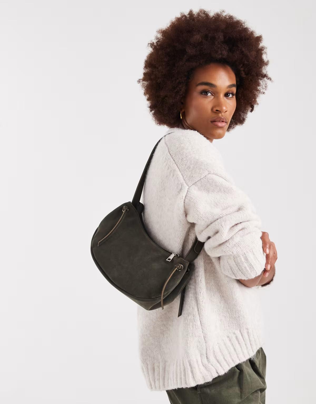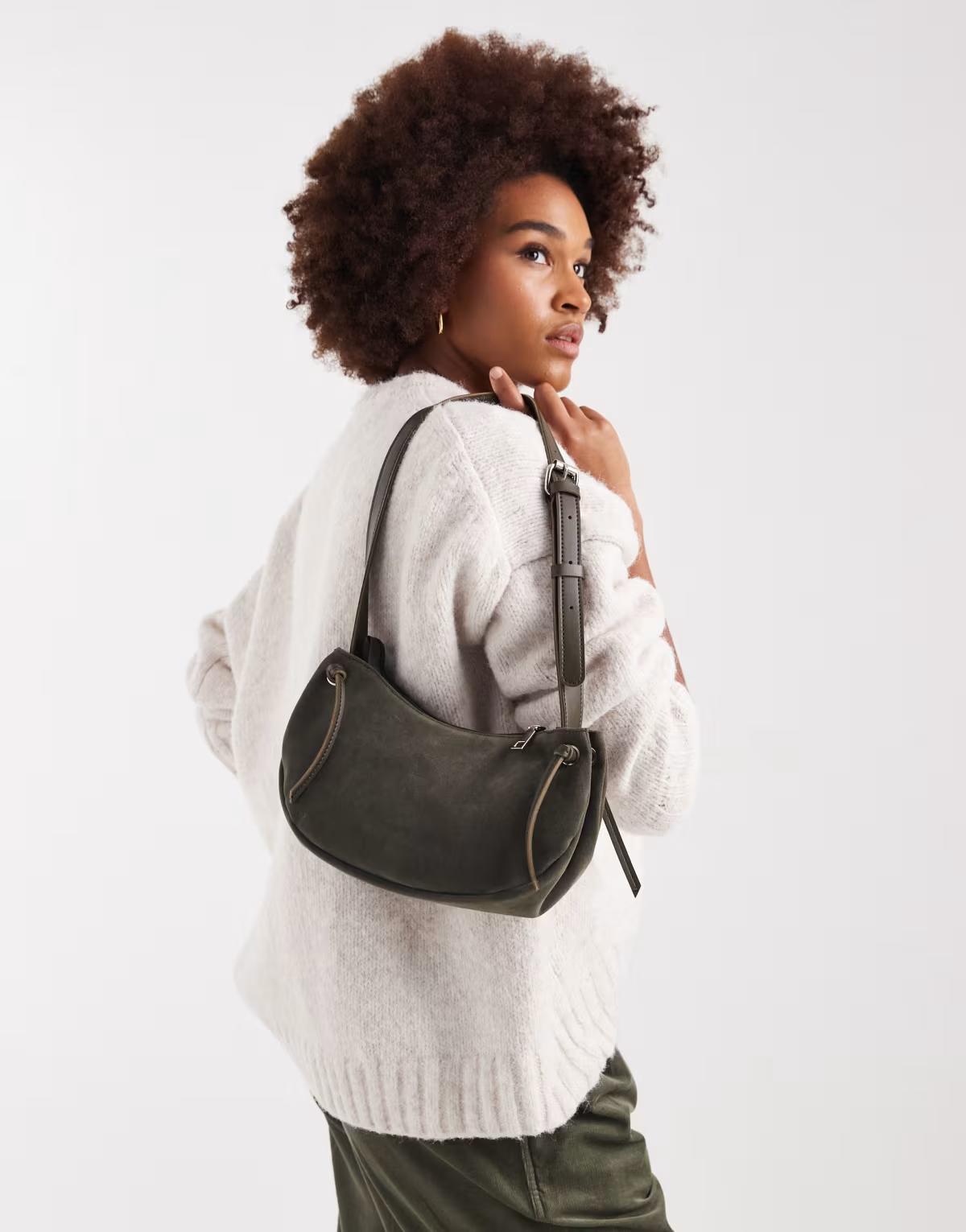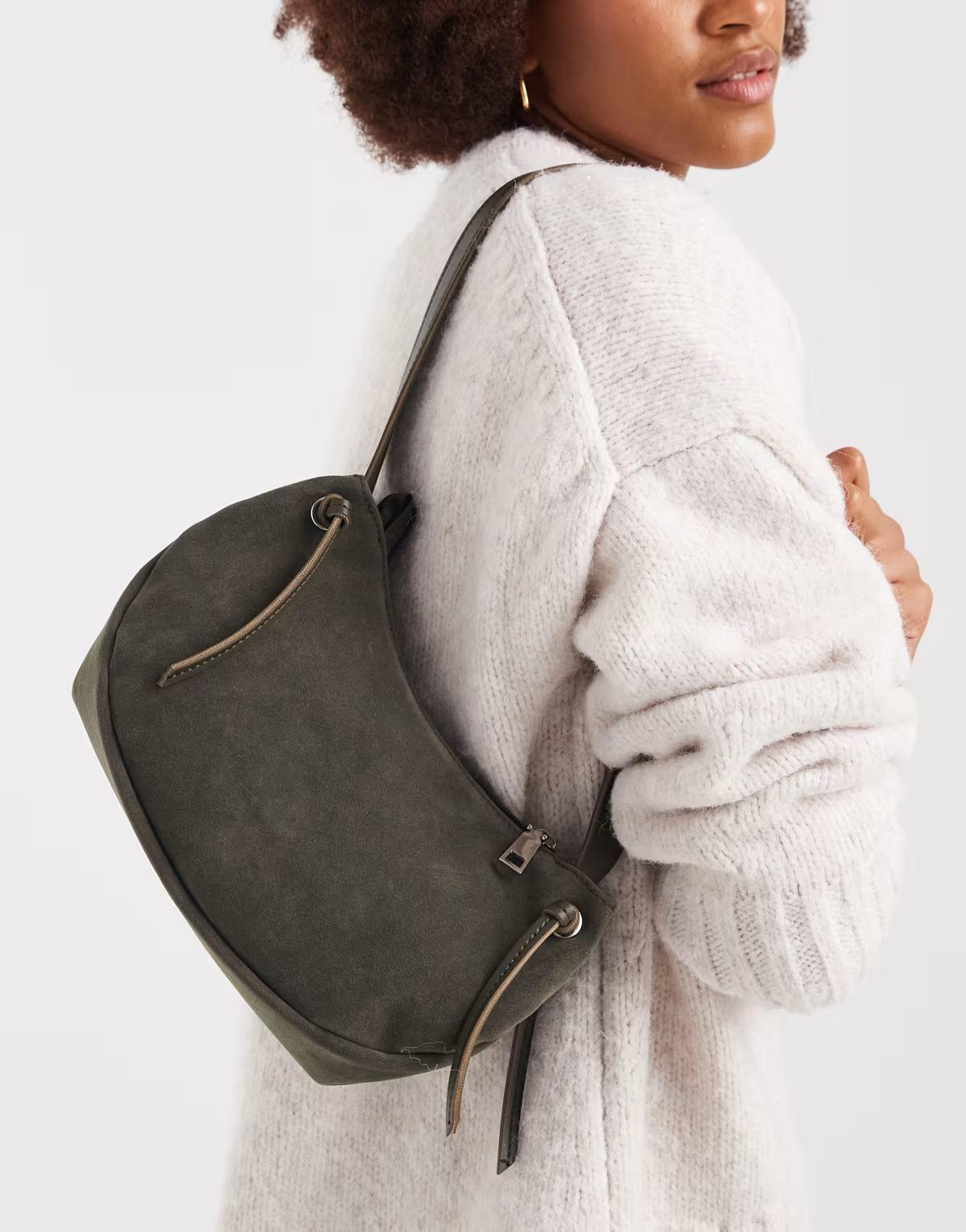 PASQ faux suede slouch small shoulder bag in green