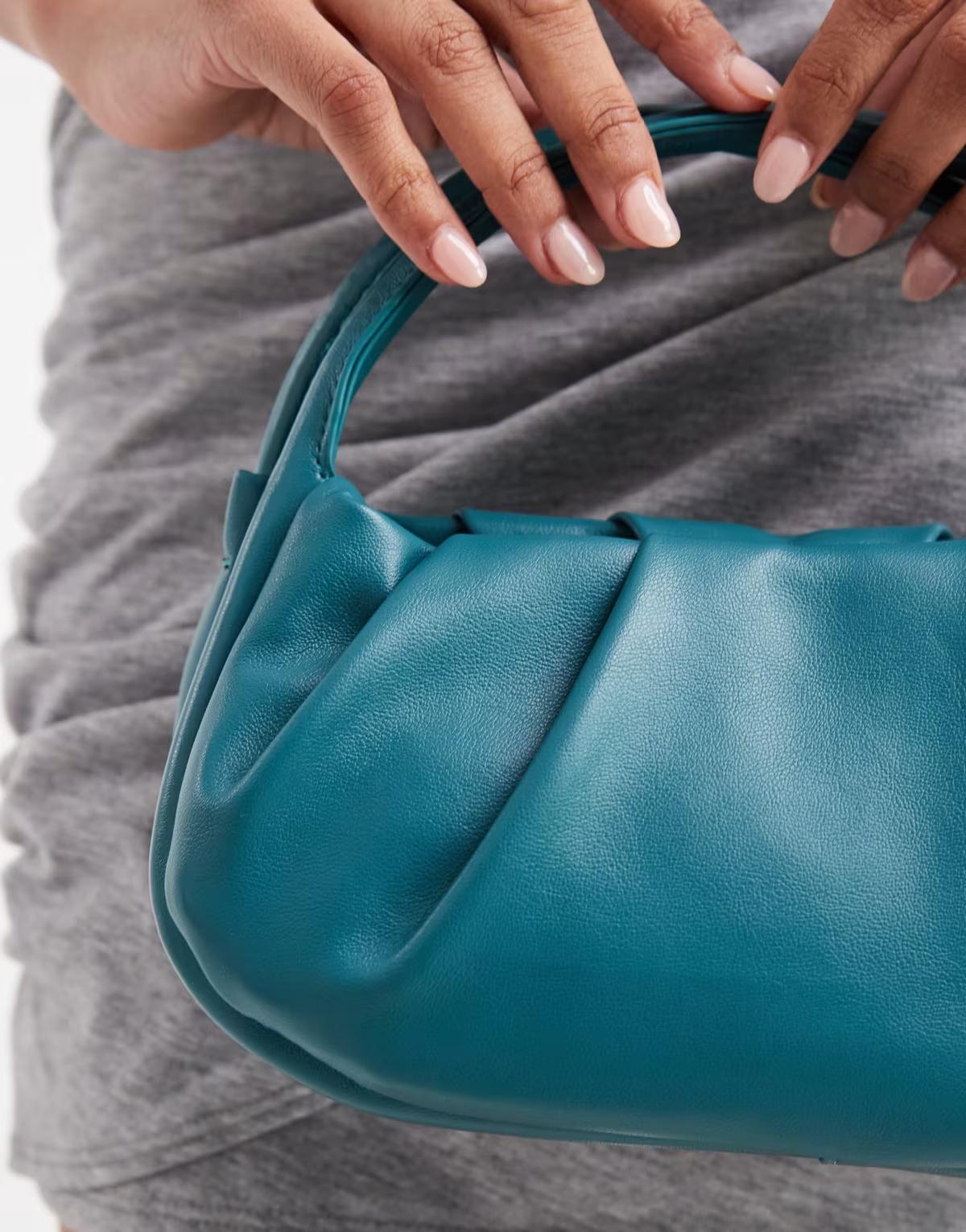 Glamorous top handle grab bag in teal
