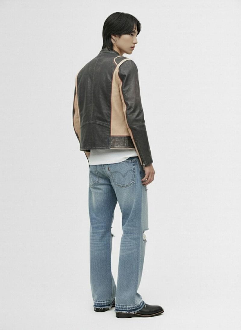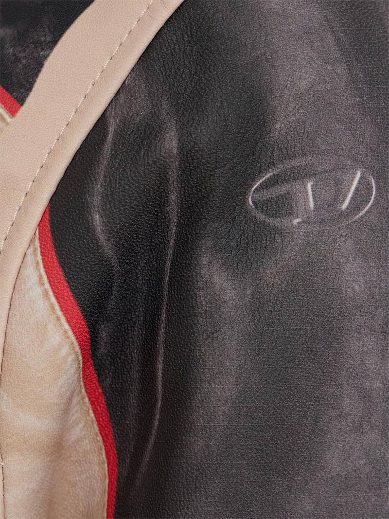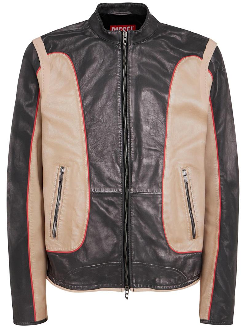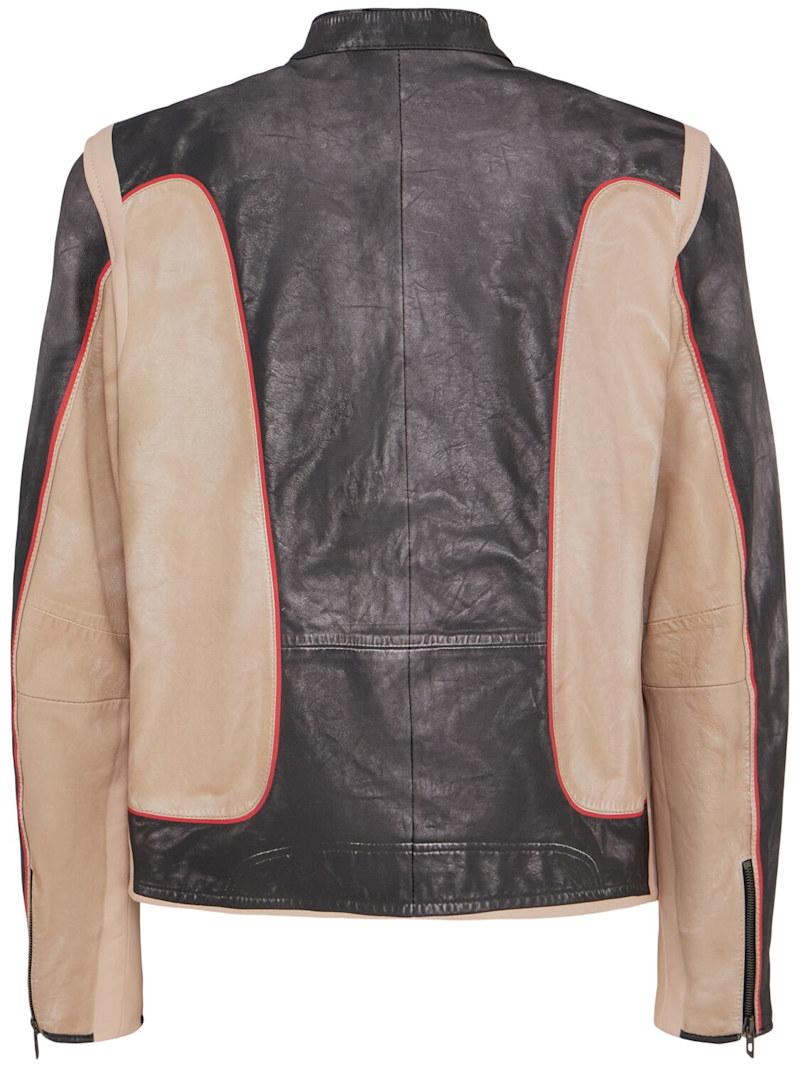 L-evert光滑皮革夹克 - Grey Beige Red - 男士 - Diesel - 领口按扣开合.
