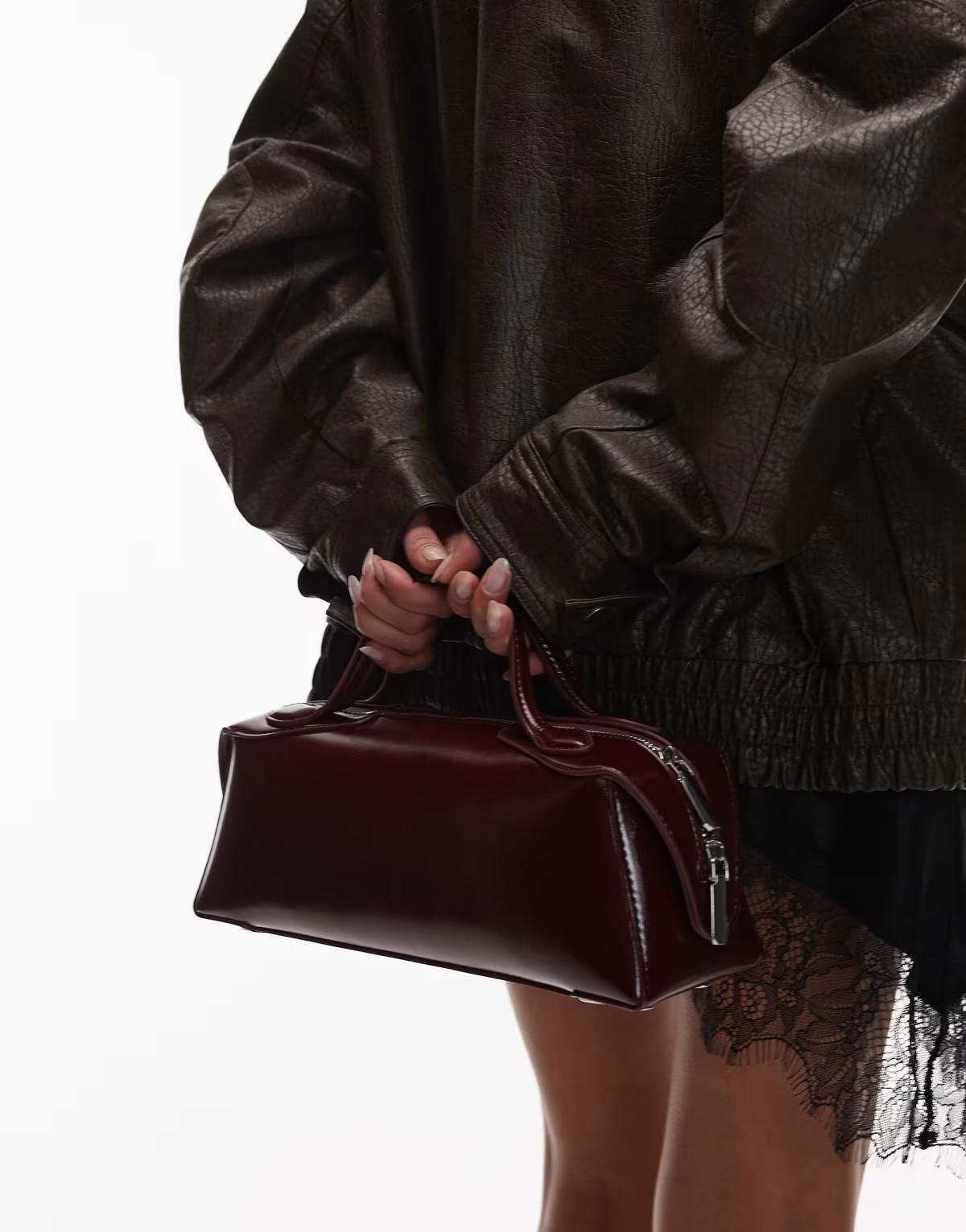 ASOS DESIGN elongated top handle bowler bag in burgundy