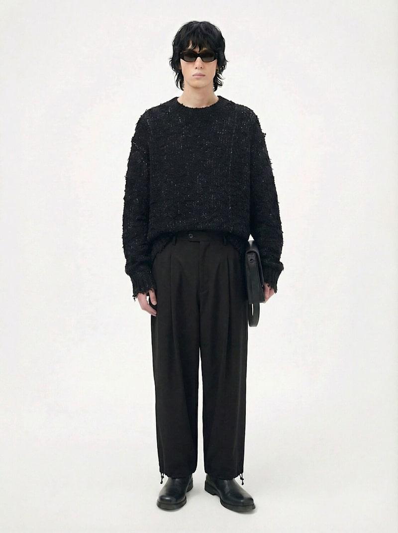 New Standard裤子 - 黑色 - 男士 - Yohji Yamamoto - 正面纽扣和隐藏式拉链开合.