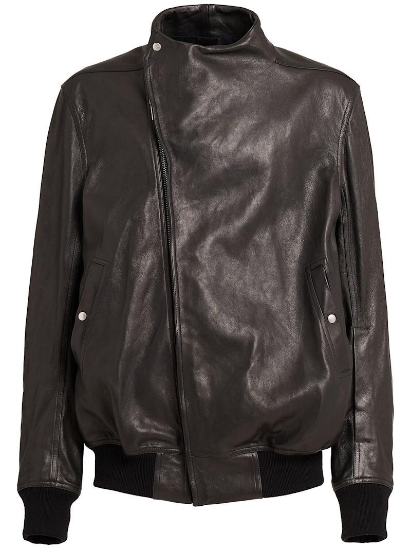 Hollywood皮革飞行员夹克 - 黑色 - 男士 - Rick Owens - 领口按扣开合.