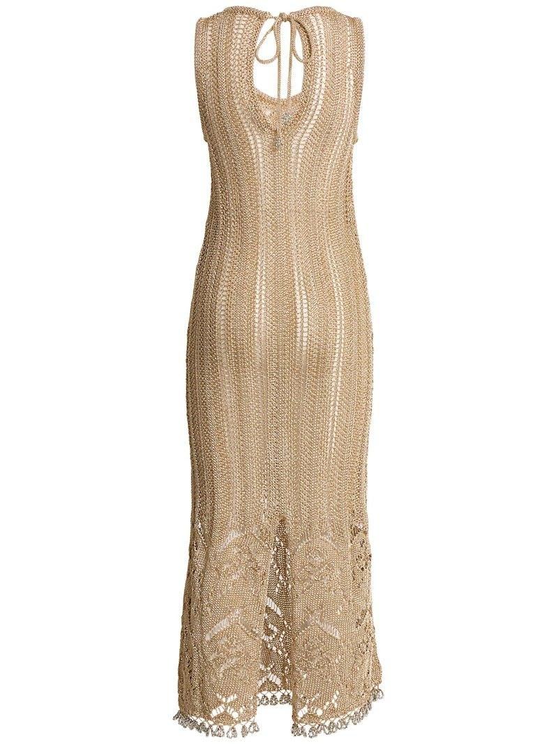 金属细节钩织长款连衣裙 - 浅金色 - 女士 - Rabanne - 绕颈后幅系带开合.