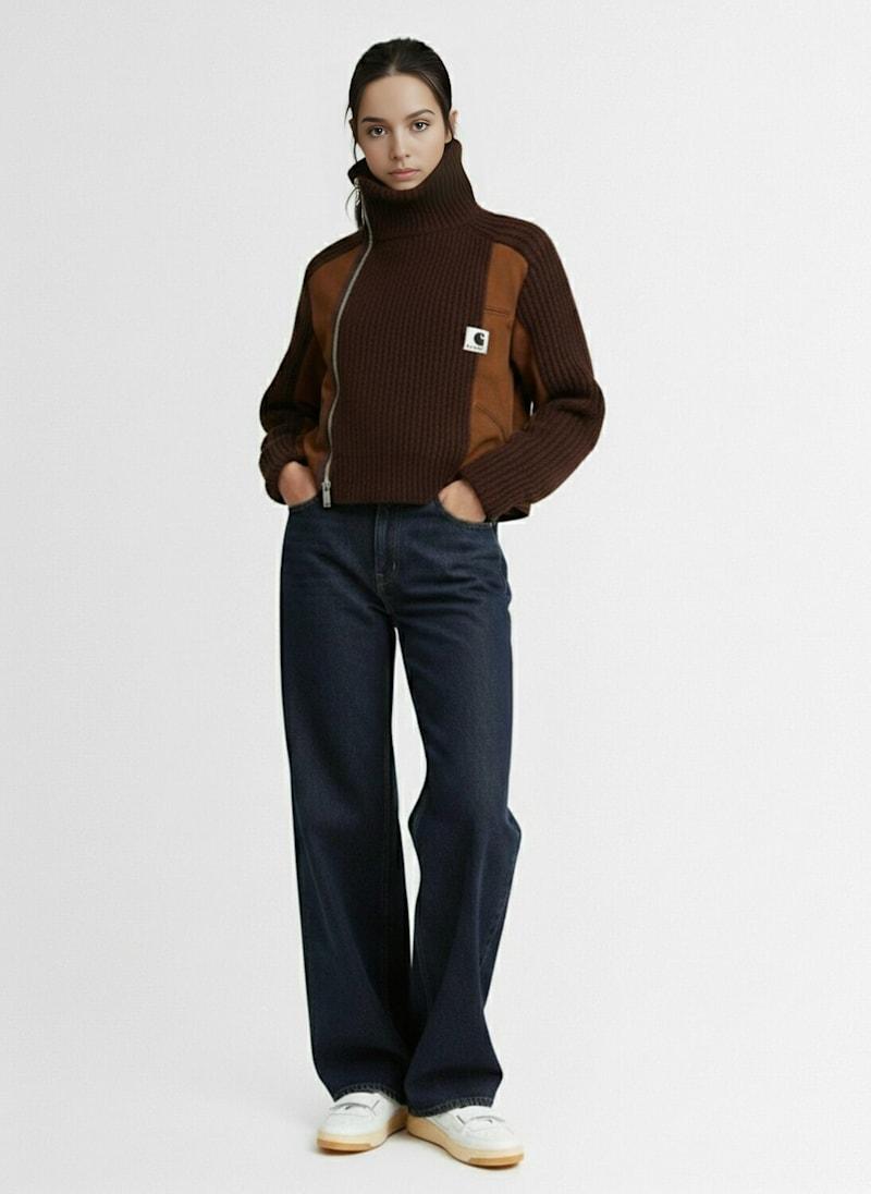 Sacai x Carhartt Duck针织夹克 - 棕色 - 女士 - Sacai - 正面拉链开合.