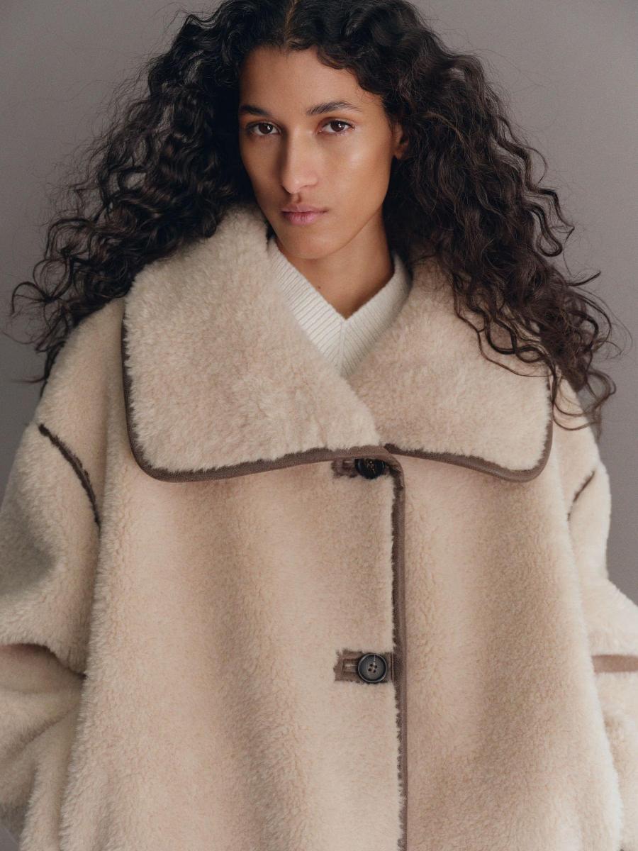 Single-breasted pile jacket with contrast bindings. Styled with a funnel-neck and button closure. Loose fit.ARKET/Women's clothes/Women's coats and jackets/Women's jackets