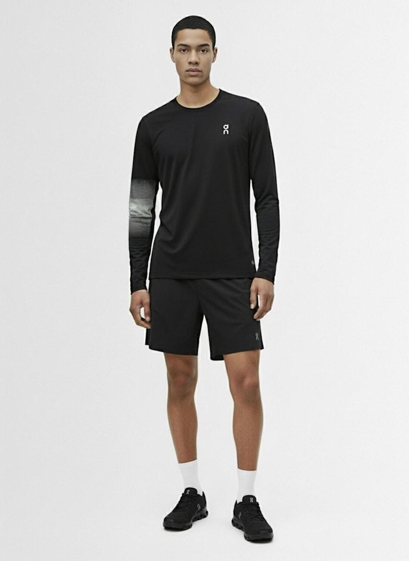 Train长袖印花T恤 - 黑色 - 男士 - On - 圆领设计.