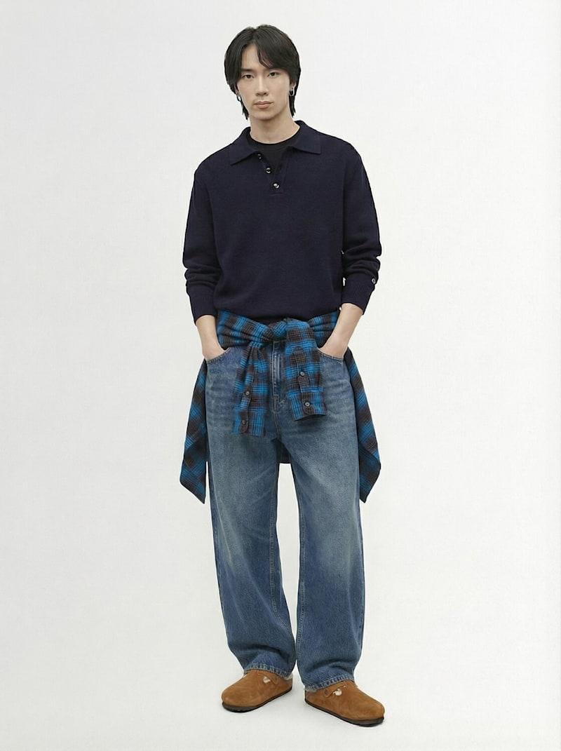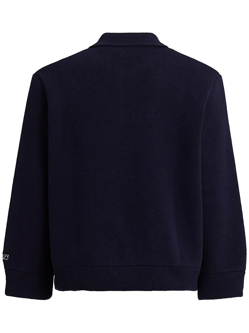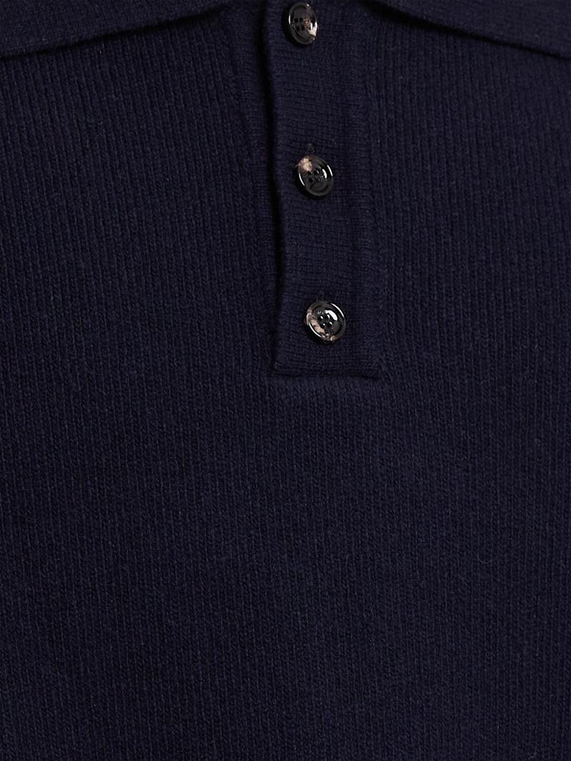 羊毛混纺POLO衫 - 海军蓝 - 男士 - Lc23 - 正面半开襟纽扣.