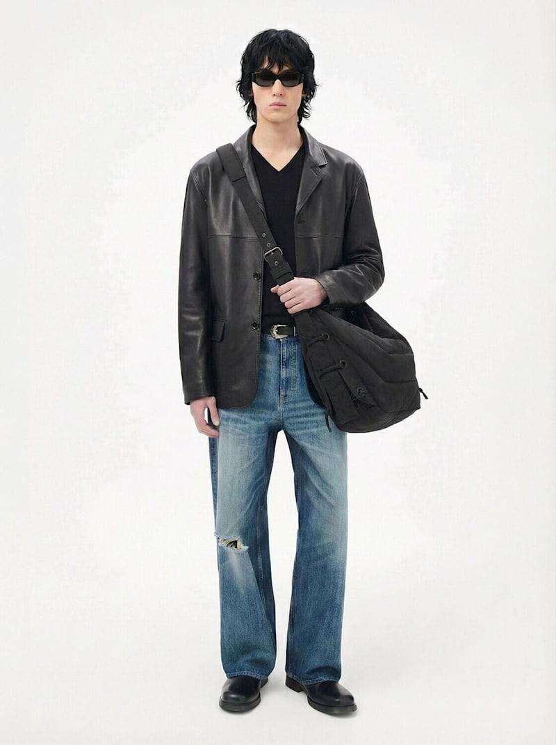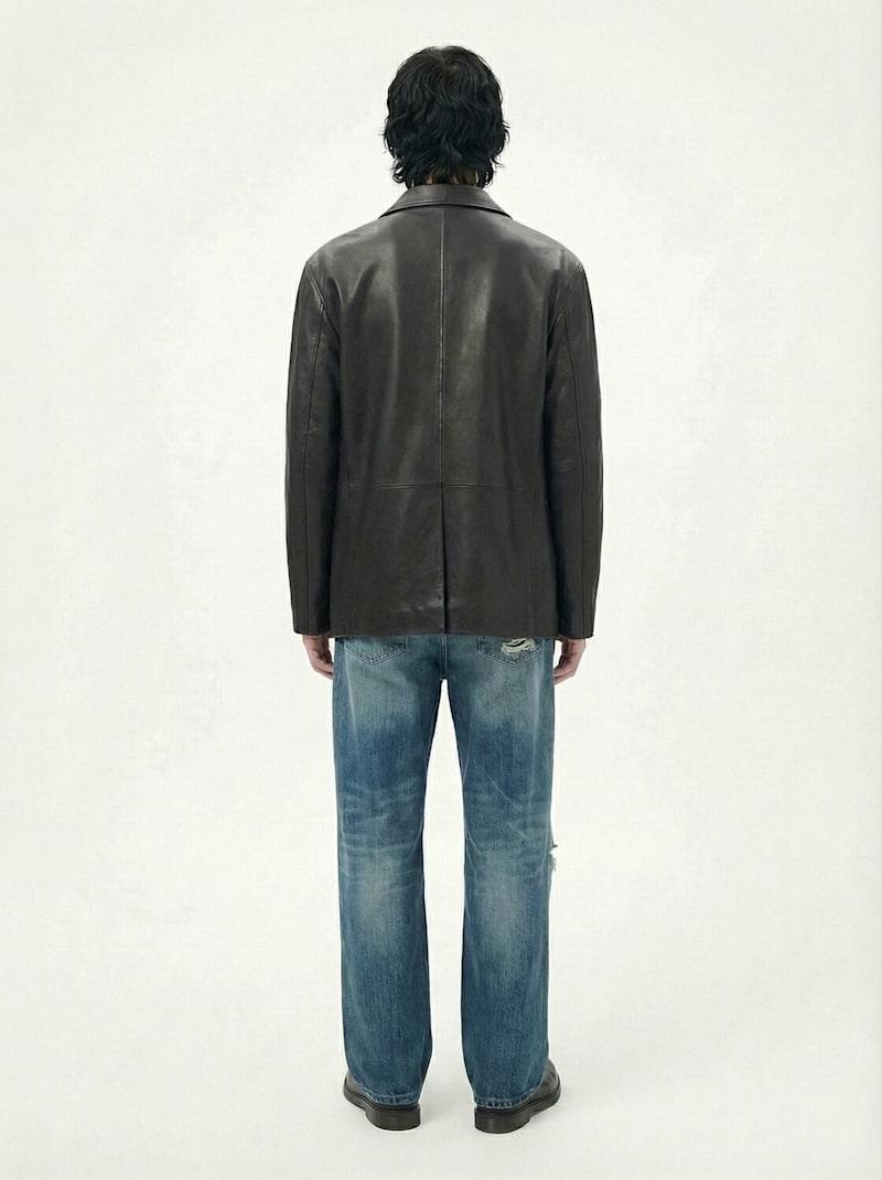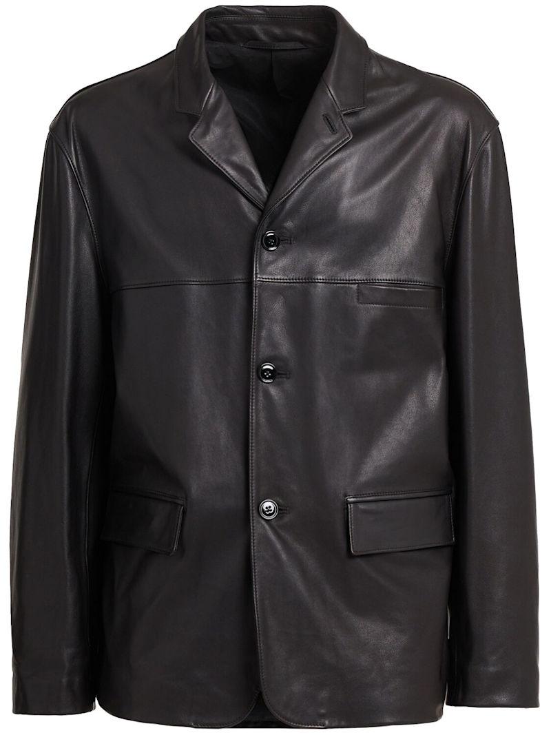 皮革夹克 - 黑色 - 男士 - Lemaire - 正面纽扣开合.