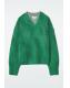 Unapologetically bold, this V-neck jumper is offered in a jade-green tone with a spray paint-effect design. It's knitted from a mohair and wool blend in a chunky half-cardigan stitch and has a rounded shape through the sleeves. Style it with classic denim.\u0026nbsp;\u0026nbsp;Relaxed fitThis product contains Responsible Mohair Standard TE-00047206 (RMS) mohair fibre from farms certified to animal welfare and land-management requirements\u0026nbsp;\u0026nbsp;Shell: 52% RMS Mohair, 33% Recycled polyamide (Recycled nylon), 15% RWS Wool. Excluding trims / Dry clean\u0026nbsp;Back length of size S is 54cm / Model wears a size S