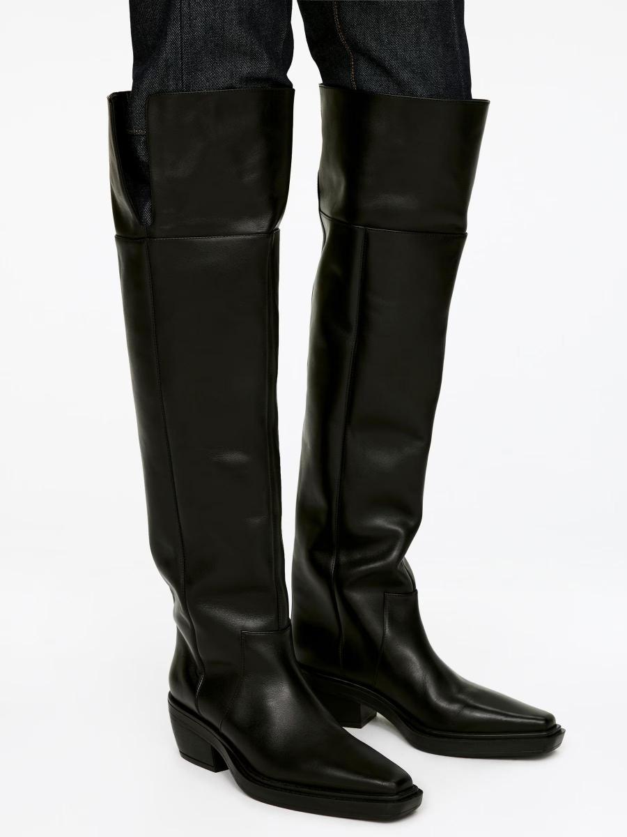 Over-the-knee boots in chrome-free tanned leather. A cowboy-inspired styled designed with a squared toe, block heel. Shaft height 54 cm, heel height 6.5 cm.ARKET/Women's clothes/Women's shoes/Women's boots