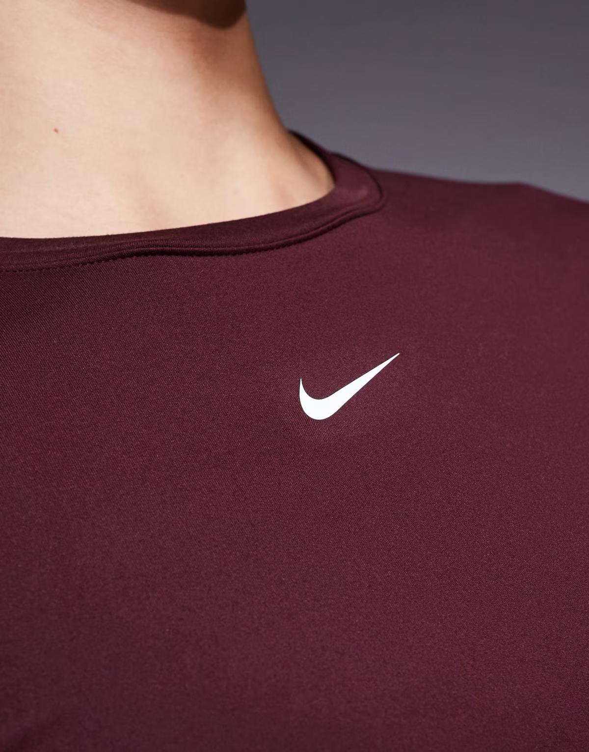 Nike One Training Dri-FIT fitted long sleeve top in burgundy