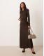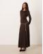 Mango Odette jersey long sleeve drape neck top & skirt co-ord in brown