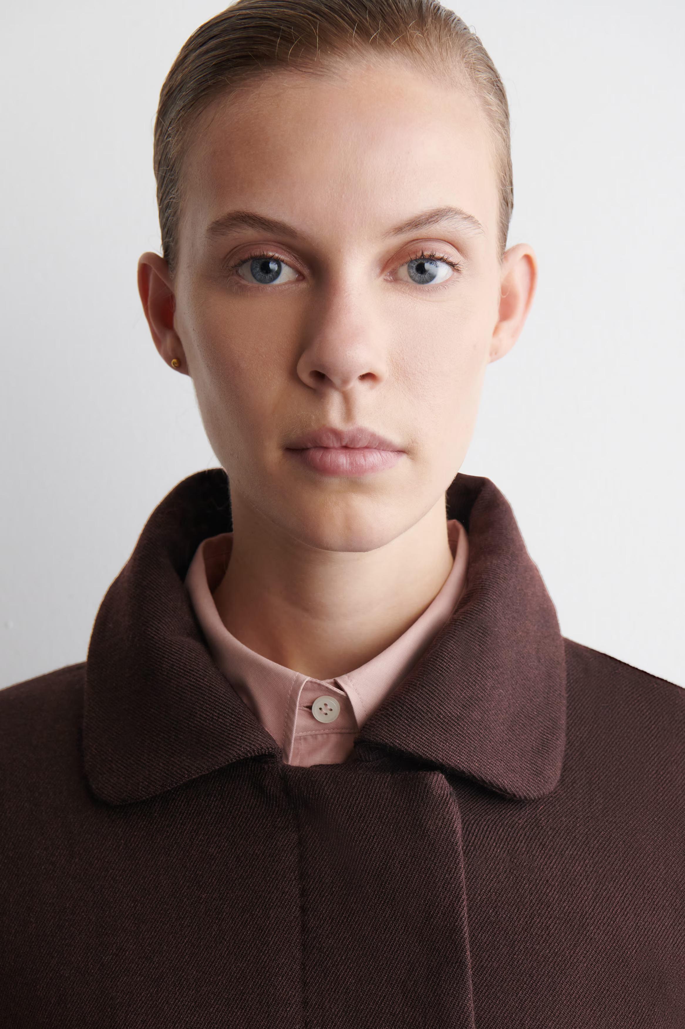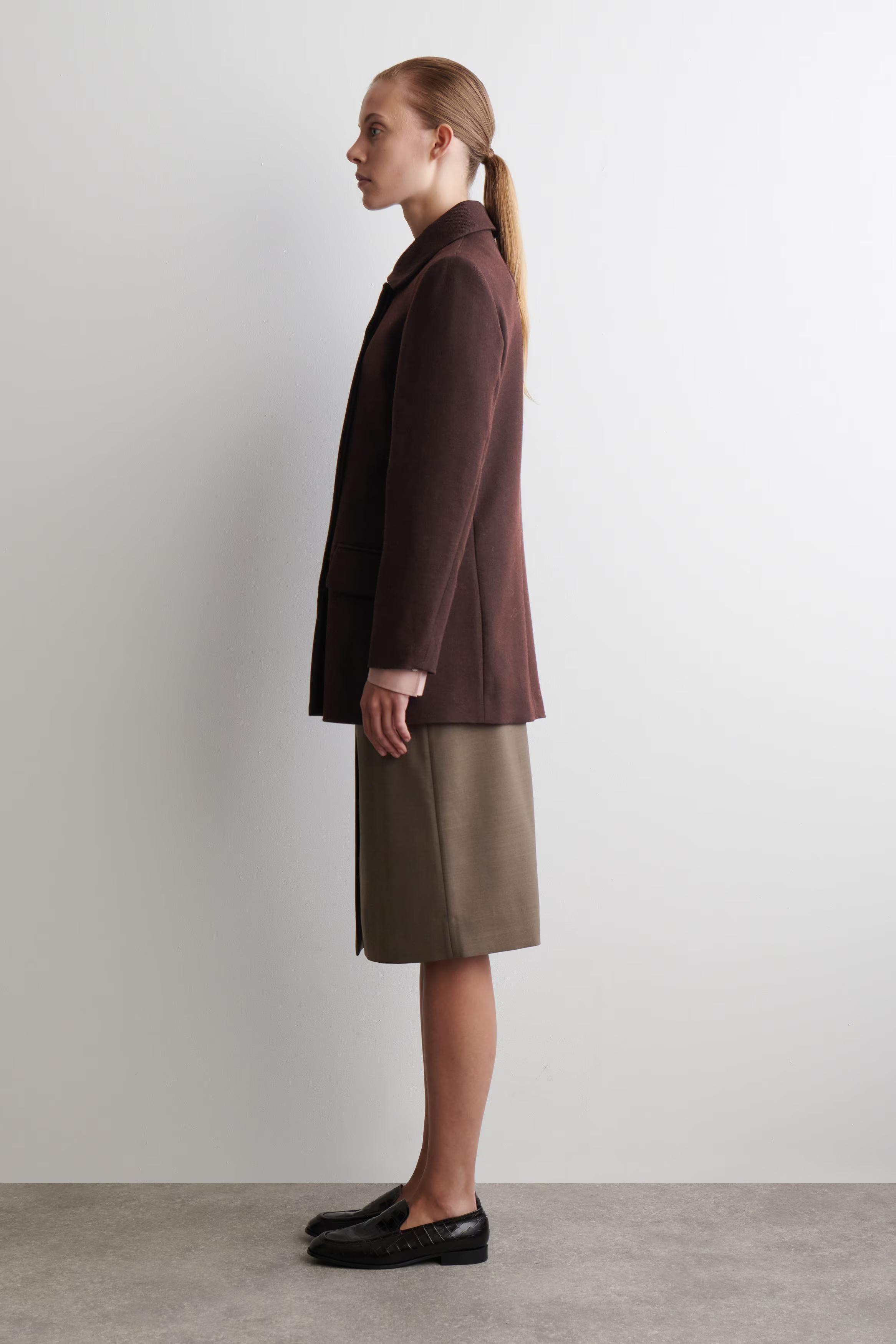 Impeccable tailoring is a cornerstone of the COS womenswear collection. Crafted from premium wool-blend twill, this refined jacket is cut in a clean, straight silhouette and features a pointed collar, welt pockets and a concealed placket.\u0026nbsp;Regular fitButton closureRecycled polyester is polyester made from PET bottles or end-of-life textile waste. The PET bottles or textile waste is mechanically recycled and processed into new yarn\u0026nbsp;Shell: 55% Recycled polyester, 45% RWS Wool. Lining: 100% Viscose. Excluding trims / Dry clean\u0026nbsp;Back length of size EU 36 is 73.4cm / Model wears a size EU 36