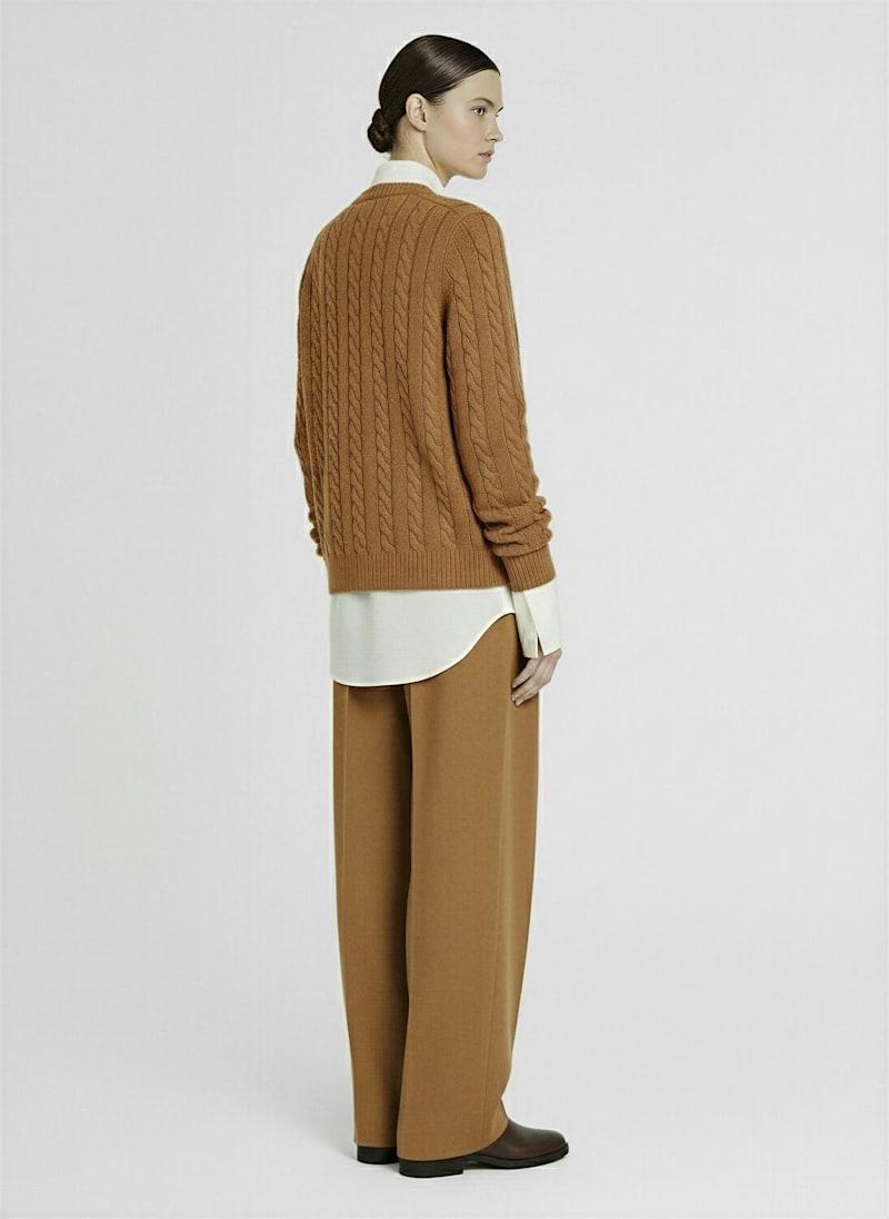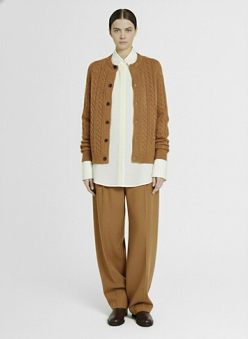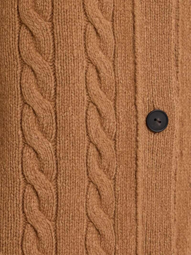 Loneke针织羊毛开衫 - 米黄色 - 女士 - The Row - 罗纹领口、袖口和下摆.