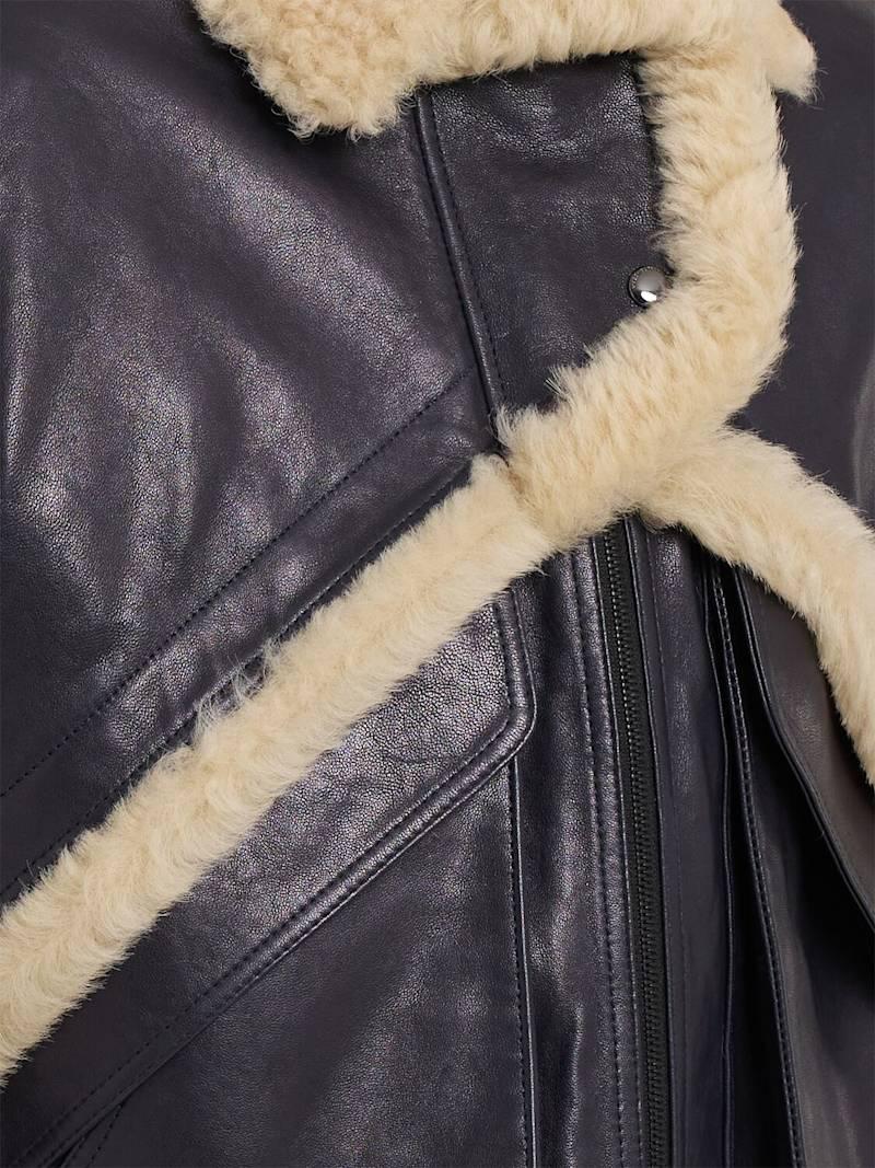 皮革&羊毛夹克 - 海军蓝 - 女士 - Magda Butrym - 正面拉链开合.