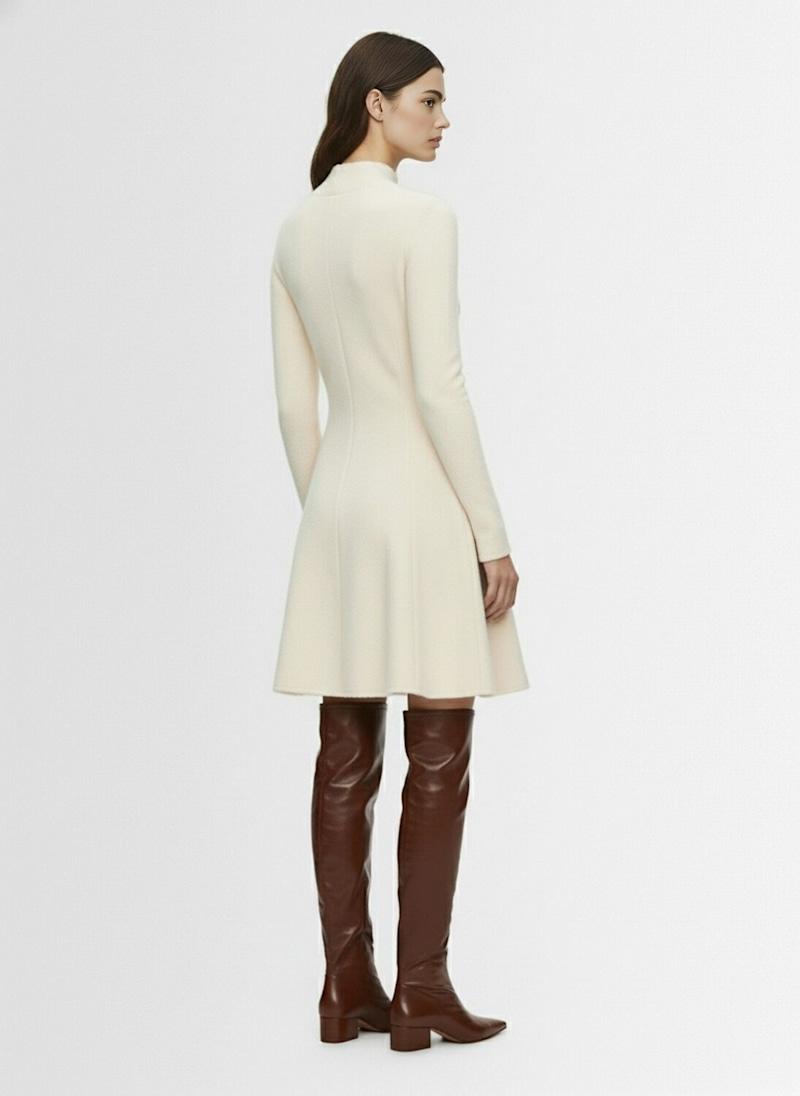 羊毛混纺高领迷你连衣裙 - 白色 - 女士 - Magda Butrym - 后领纽扣开合