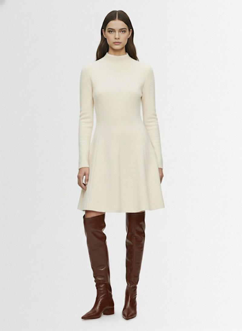 羊毛混纺高领迷你连衣裙