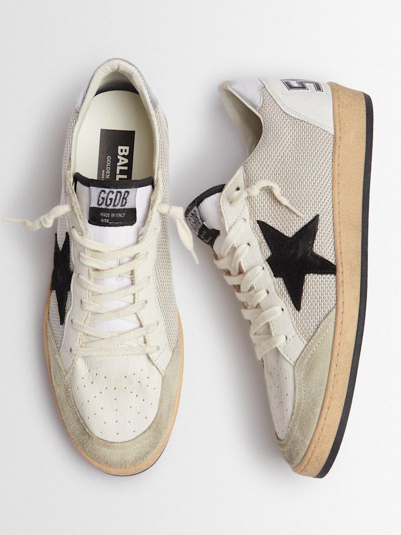Ball Star皮革&麂皮运动鞋 - 银色/黑色 - 男士 - Golden Goose - 正面系带开合.