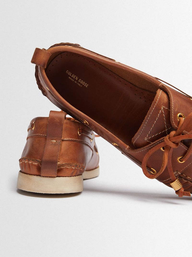 皮革系带鞋 - 棕黄色 - 男士 - Golden Goose - 皮革鞋面.