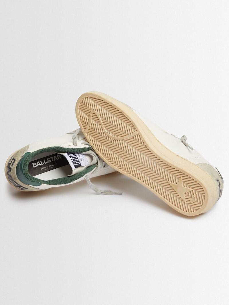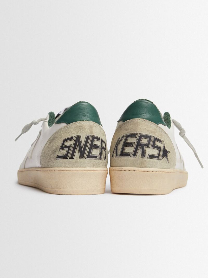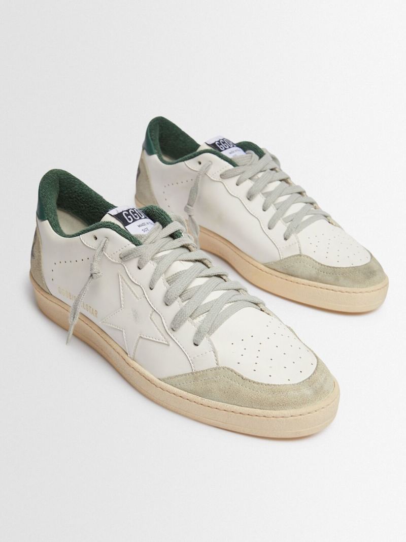 Ball Star皮革&麂皮运动鞋 - White/Ice/Green - 男士 - Golden Goose - 正面系带开合.
