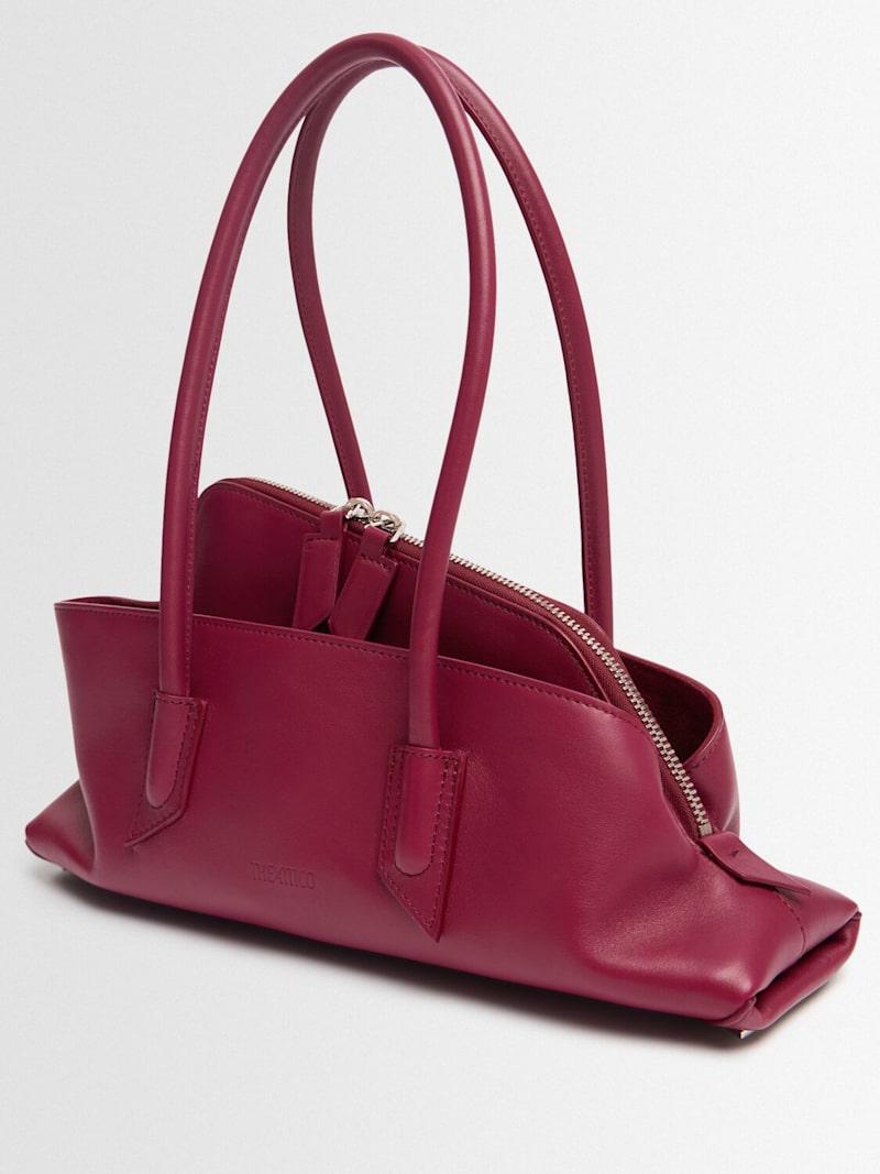 La Passeggiata小号柔软皮革单肩包 - 酒红色 - 女士 - The Attico - 顶部双条提手.