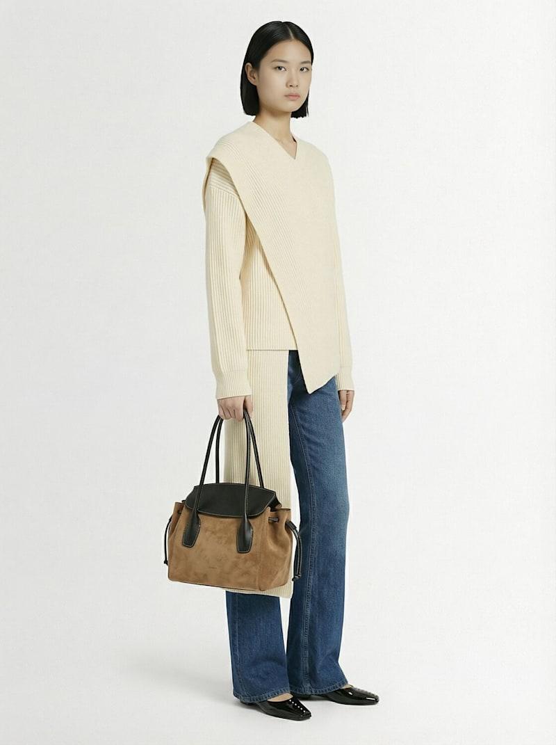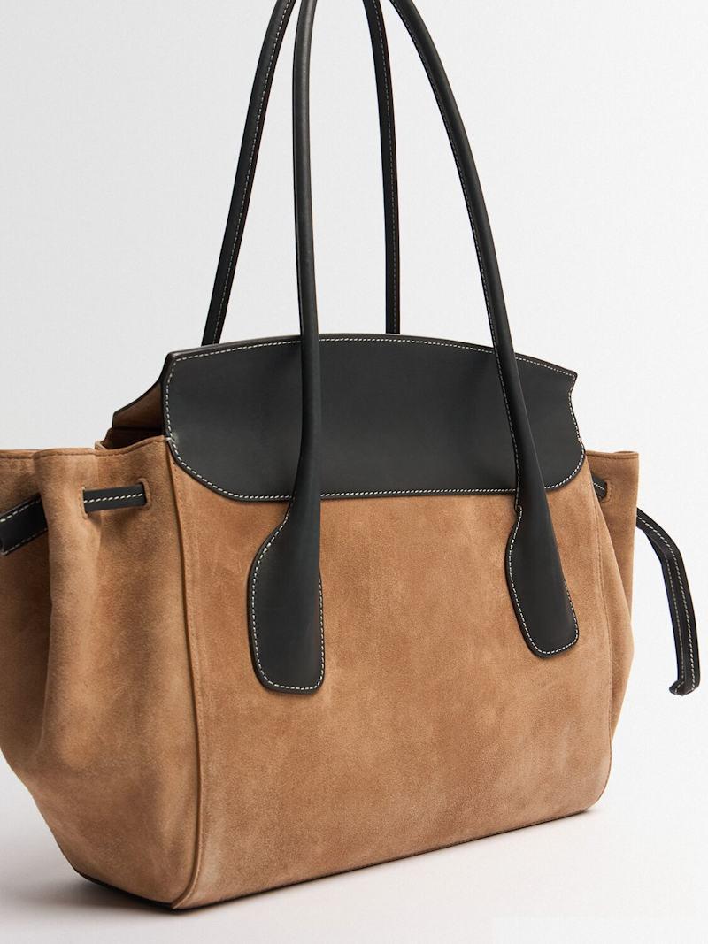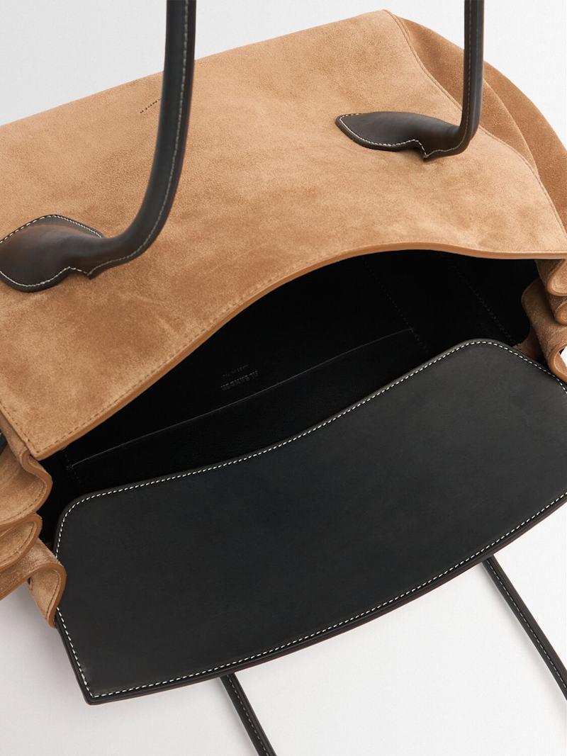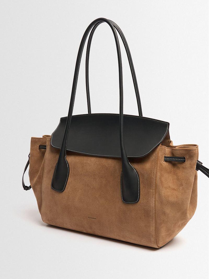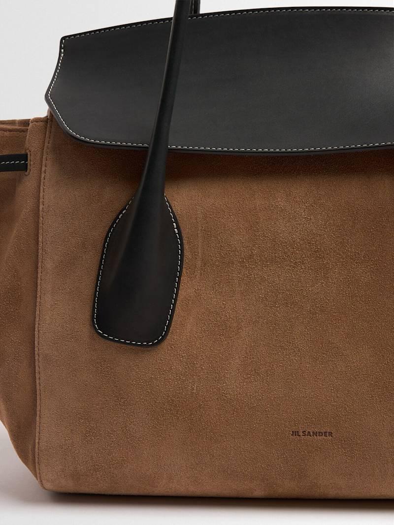 Voyage小号麂皮托特包 - 烟草色 - 女士 - Jil Sander - 顶部双条提手.