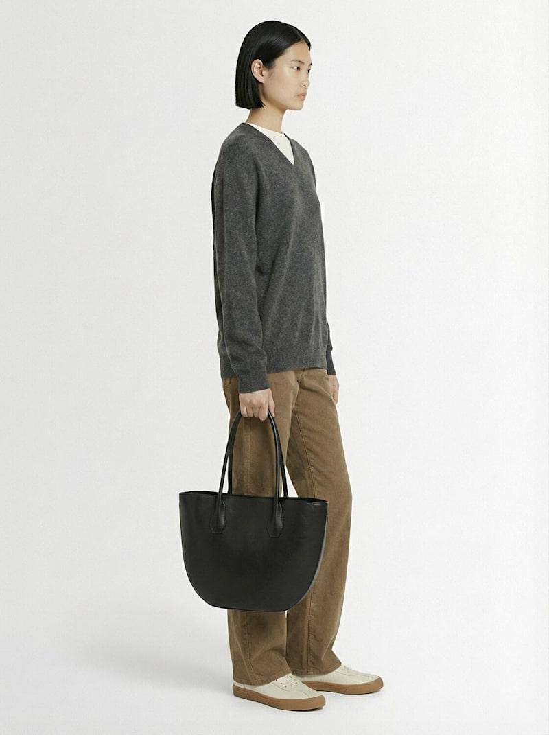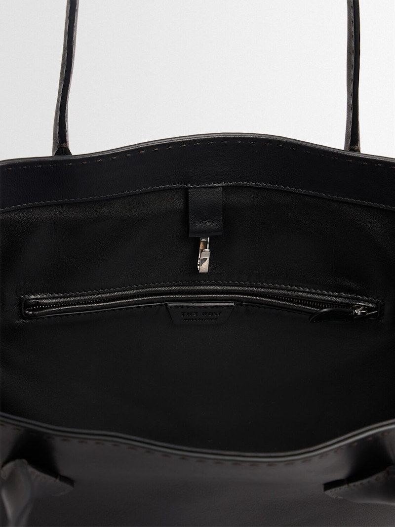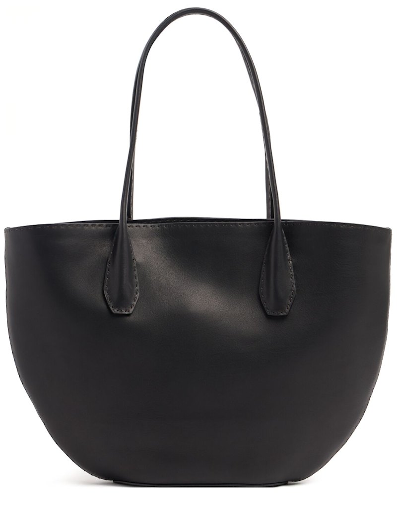 Alger皮革托特包 - Black/Dark Brow - 女士 - The Row - 顶部双条提手.