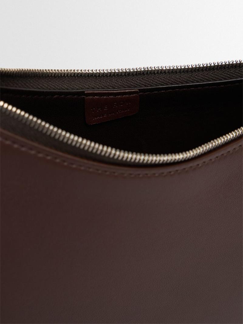 半月形皮革单肩包 - 麻棕色 - 女士 - The Row - 固定式肩带.