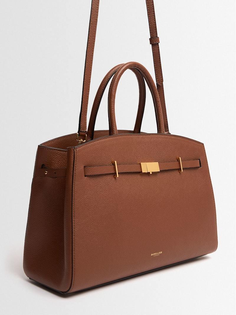 The Midi Hudson粒面皮革手提包 - 棕黄色 - 女士 - DeMellier - 可拆卸可调节束带.